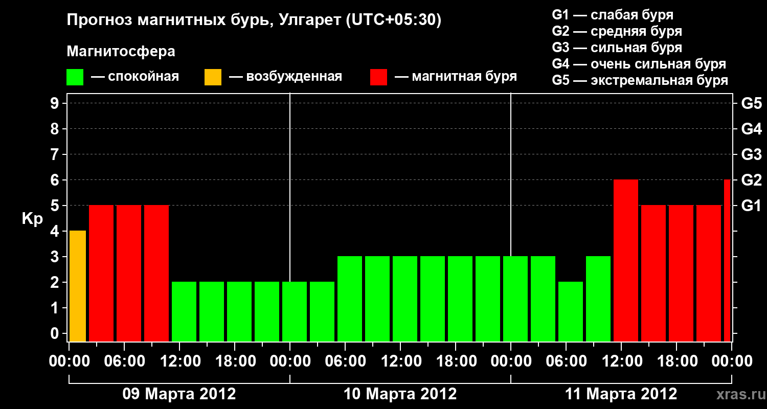 Прогноз магнитных бурь в Улгарете — 9 марта 2012 года
