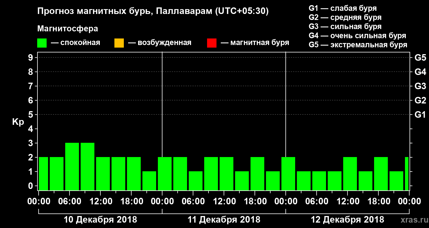 Прогноз магнитных бурь в Паллавараме — 10 декабря 2018 года