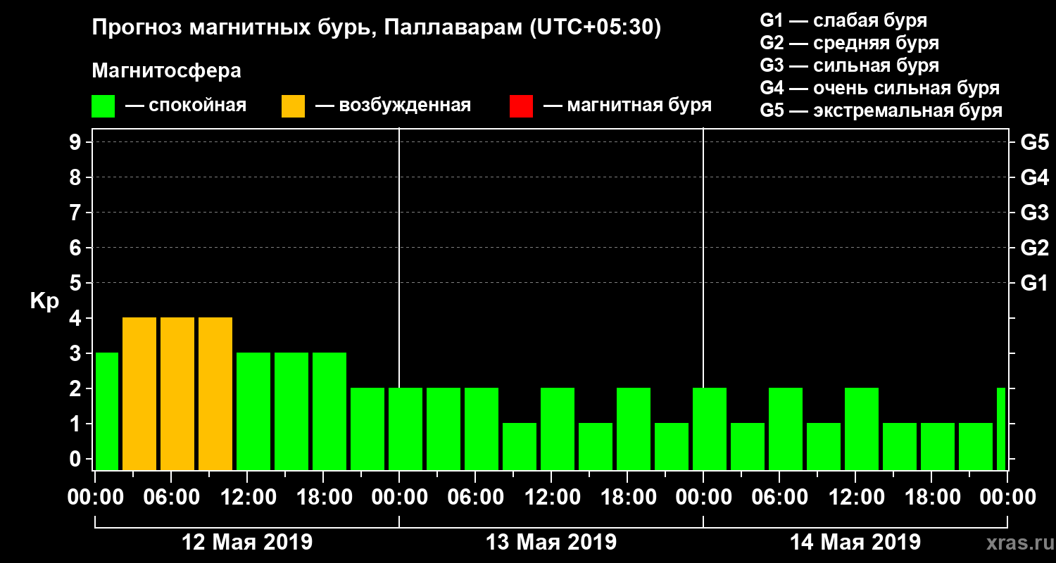 Прогноз магнитных бурь в Паллавараме — 12 мая 2019 года