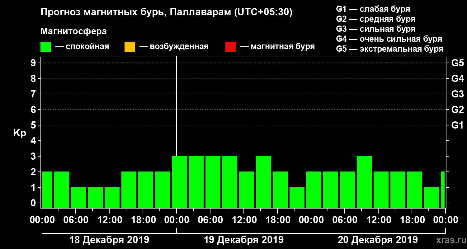 Прогноз магнитных бурь в Паллавараме — 18 декабря 2019 года