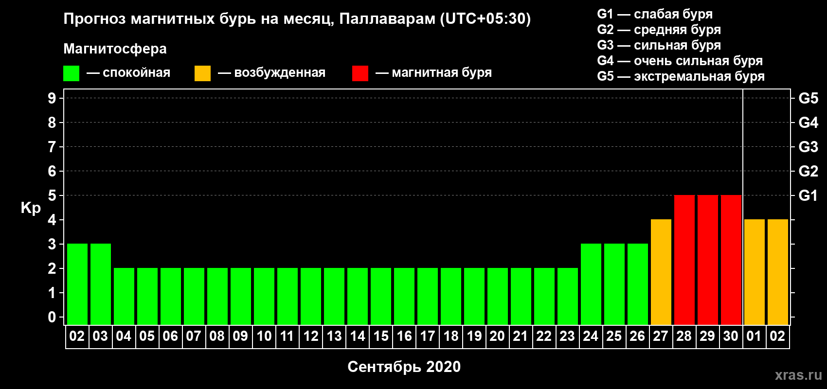 Прогноз магнитных бурь в Паллавараме — 2 сентября 2020 года