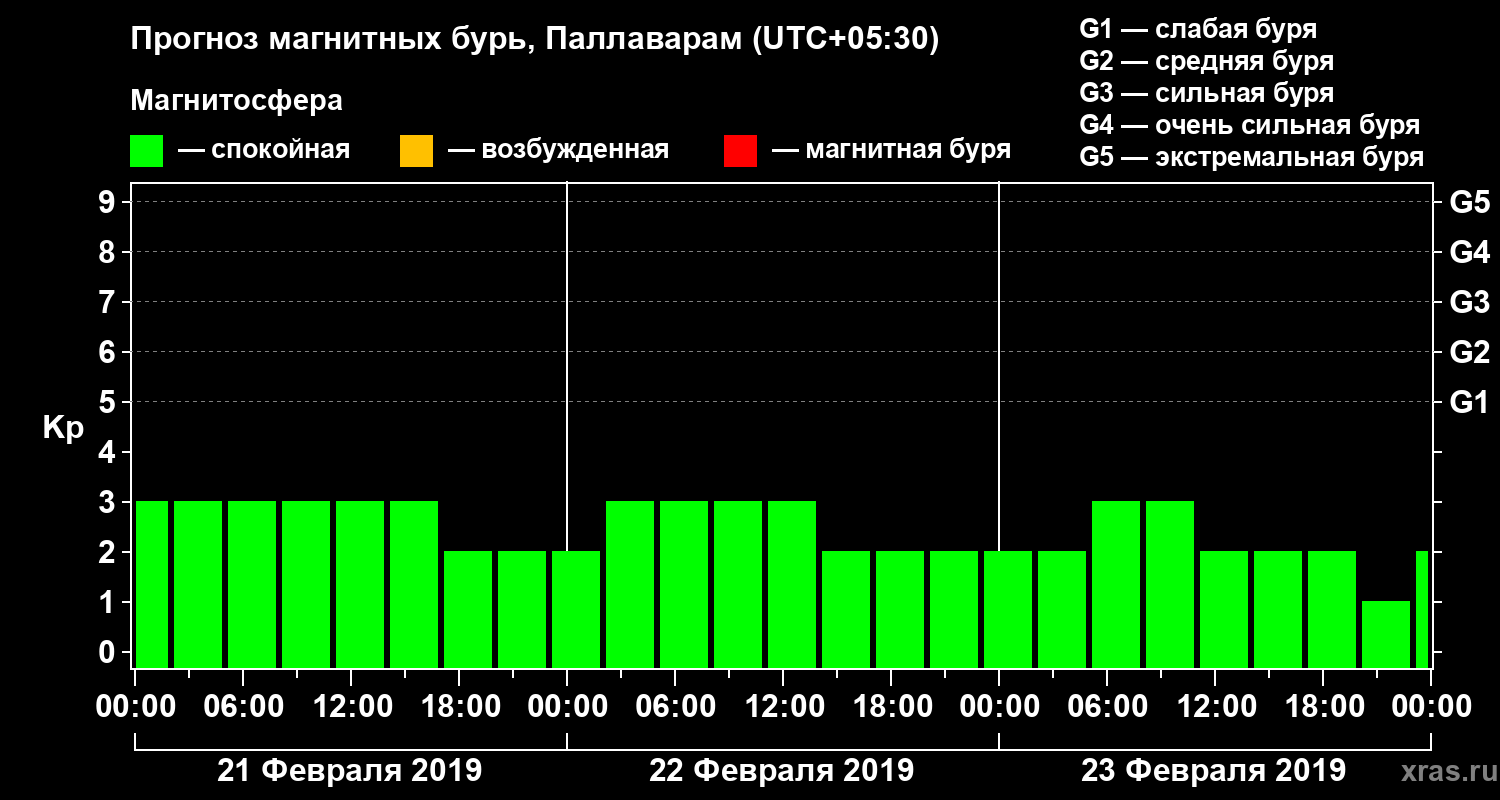 Прогноз магнитных бурь в Паллавараме — 21 февраля 2019 года