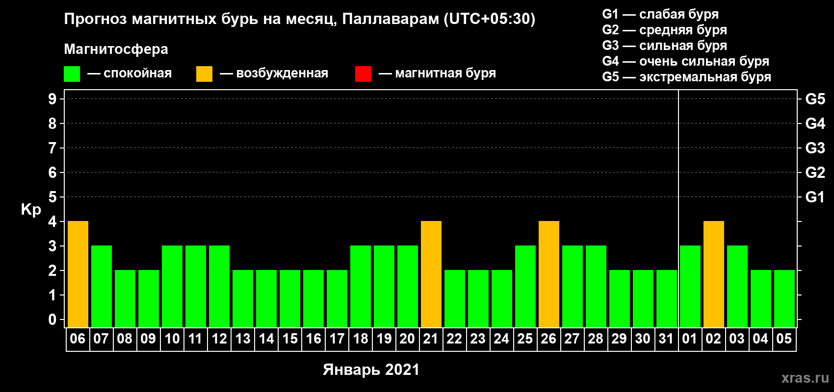Прогноз магнитных бурь в Паллавараме — 6 января 2021 года