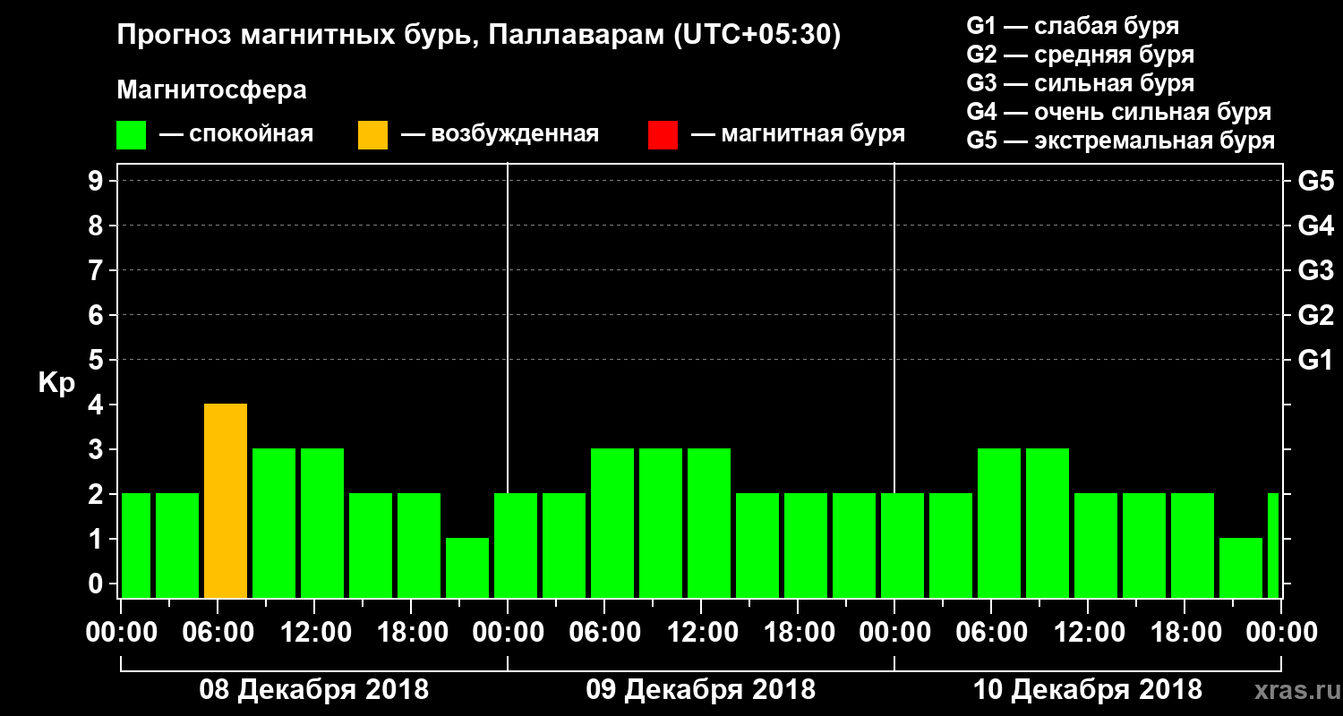Прогноз магнитных бурь в Паллавараме — 8 декабря 2018 года