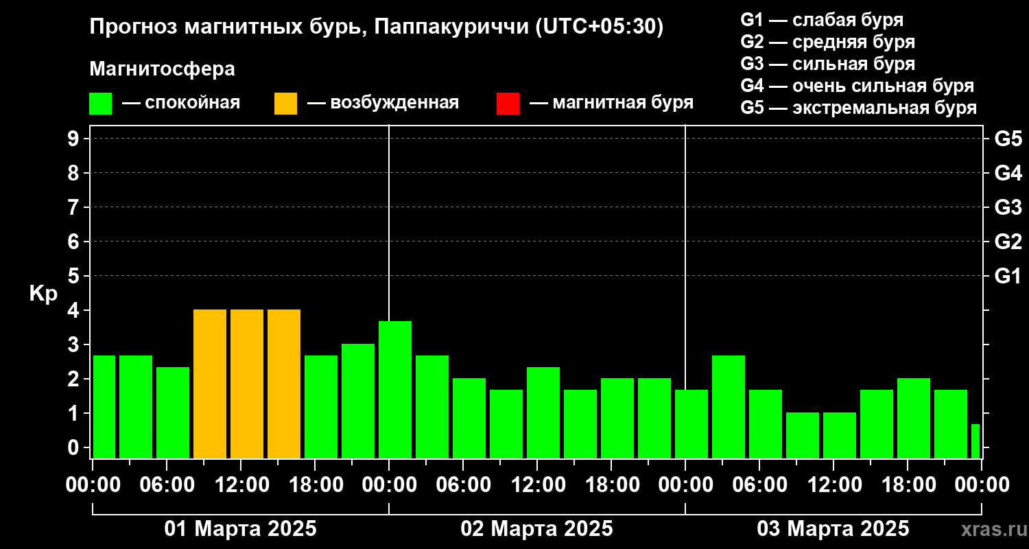 Прогноз магнитных бурь Паппакуриччи на 1 марта 2025 года