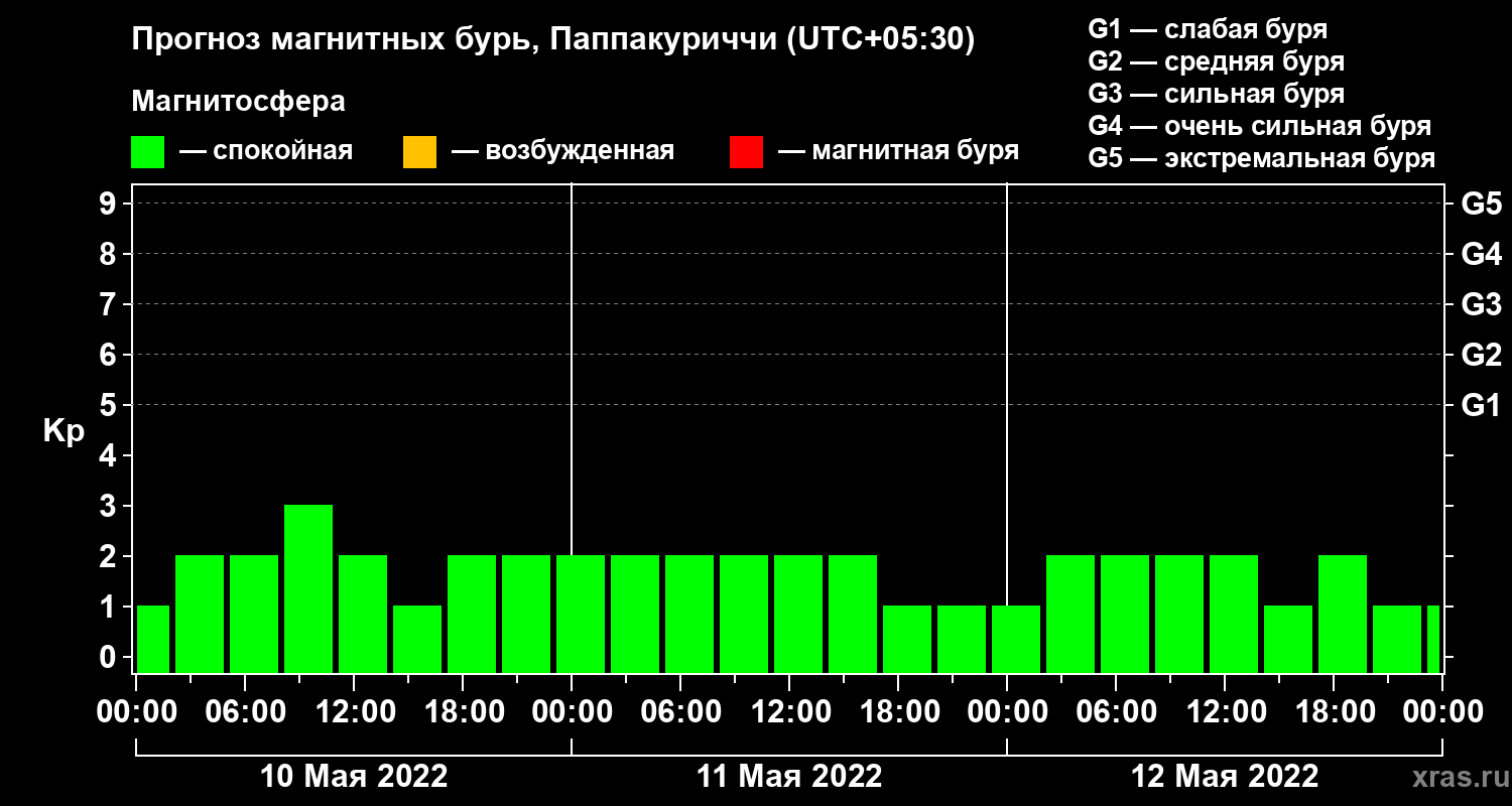 Прогноз магнитных бурь Паппакуриччи — 10 мая 2022 года