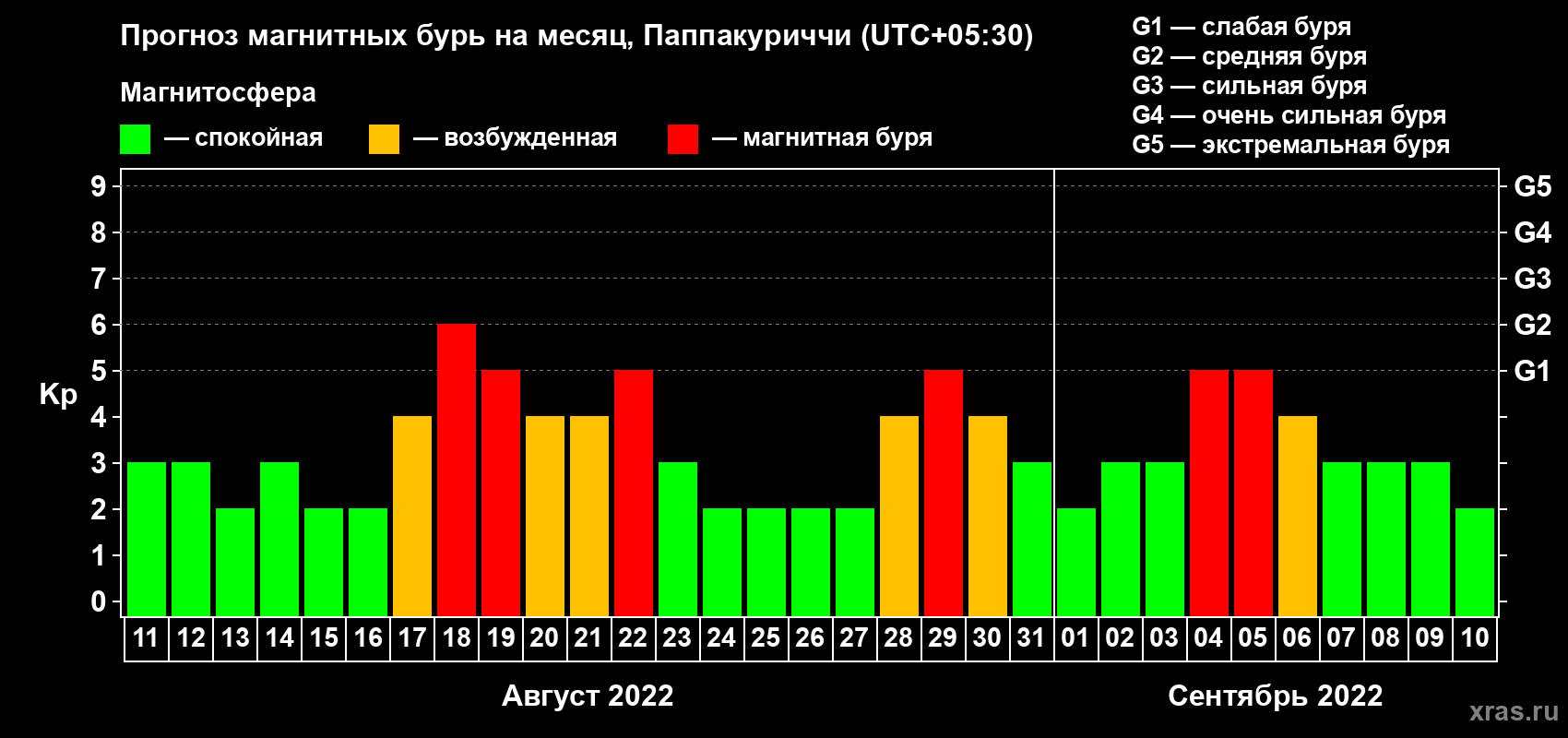 Прогноз магнитных бурь Паппакуриччи — 11 августа 2022 года