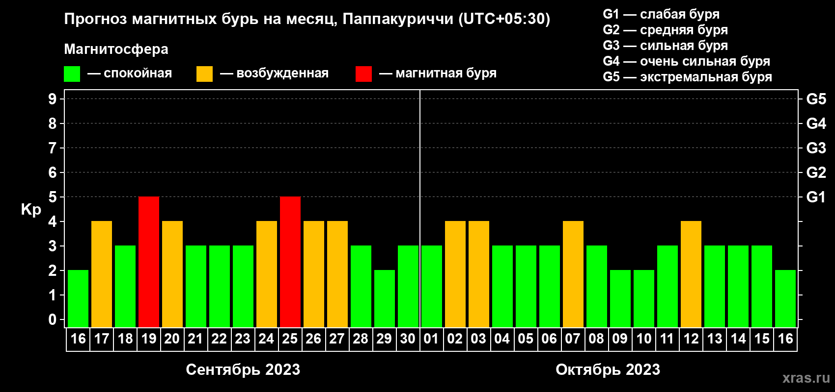 Прогноз магнитных бурь Паппакуриччи — 16 сентября 2023 года