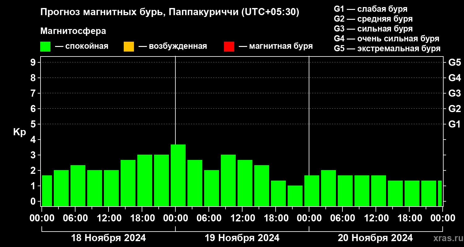 Прогноз магнитных бурь Паппакуриччи — 18 ноября 2024 года