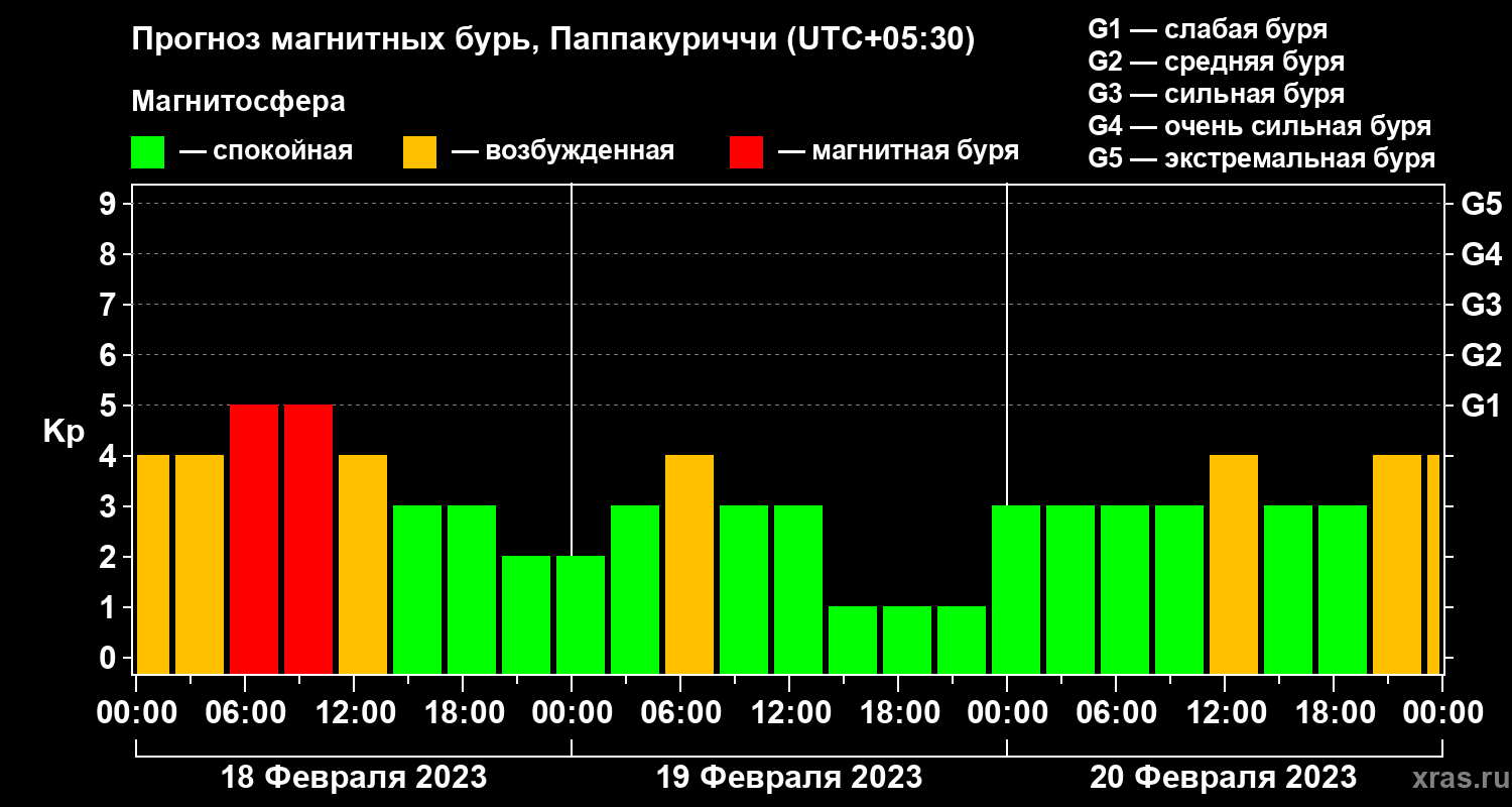 Прогноз магнитных бурь Паппакуриччи — 18 февраля 2023 года