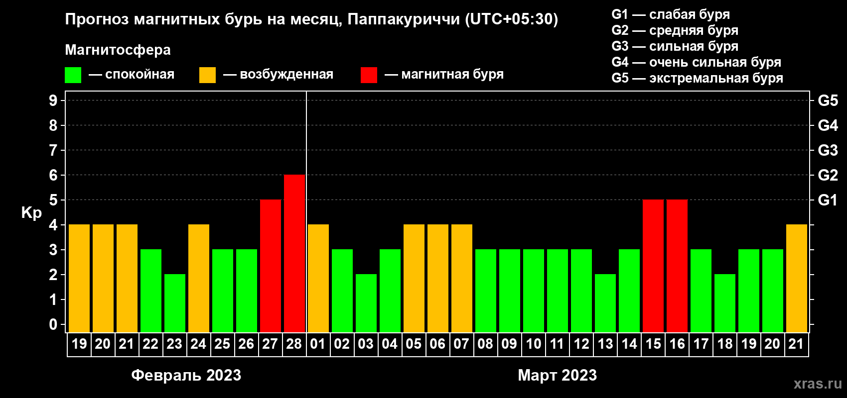 Прогноз магнитных бурь Паппакуриччи — 19 февраля 2023 года
