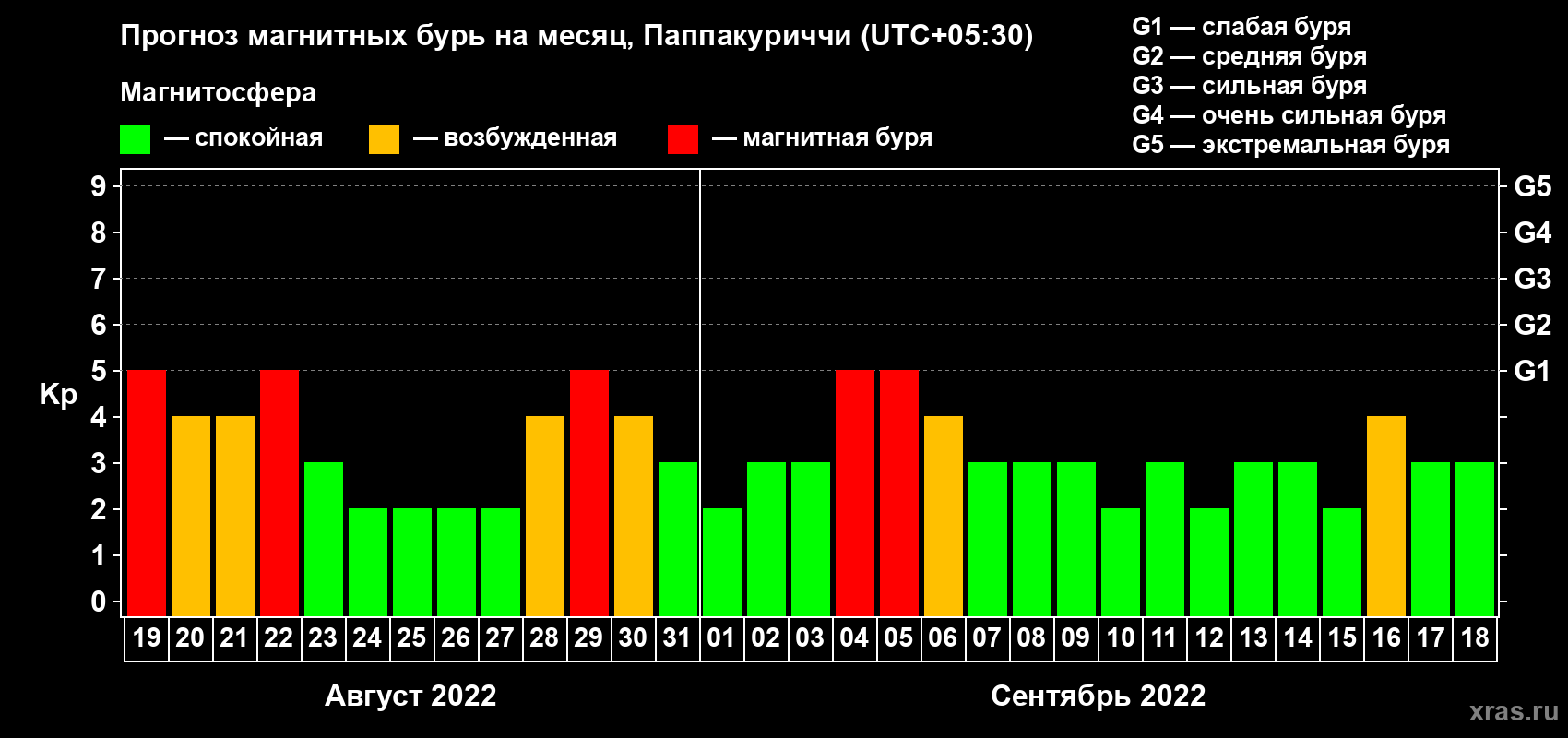 Прогноз магнитных бурь Паппакуриччи — 19 августа 2022 года
