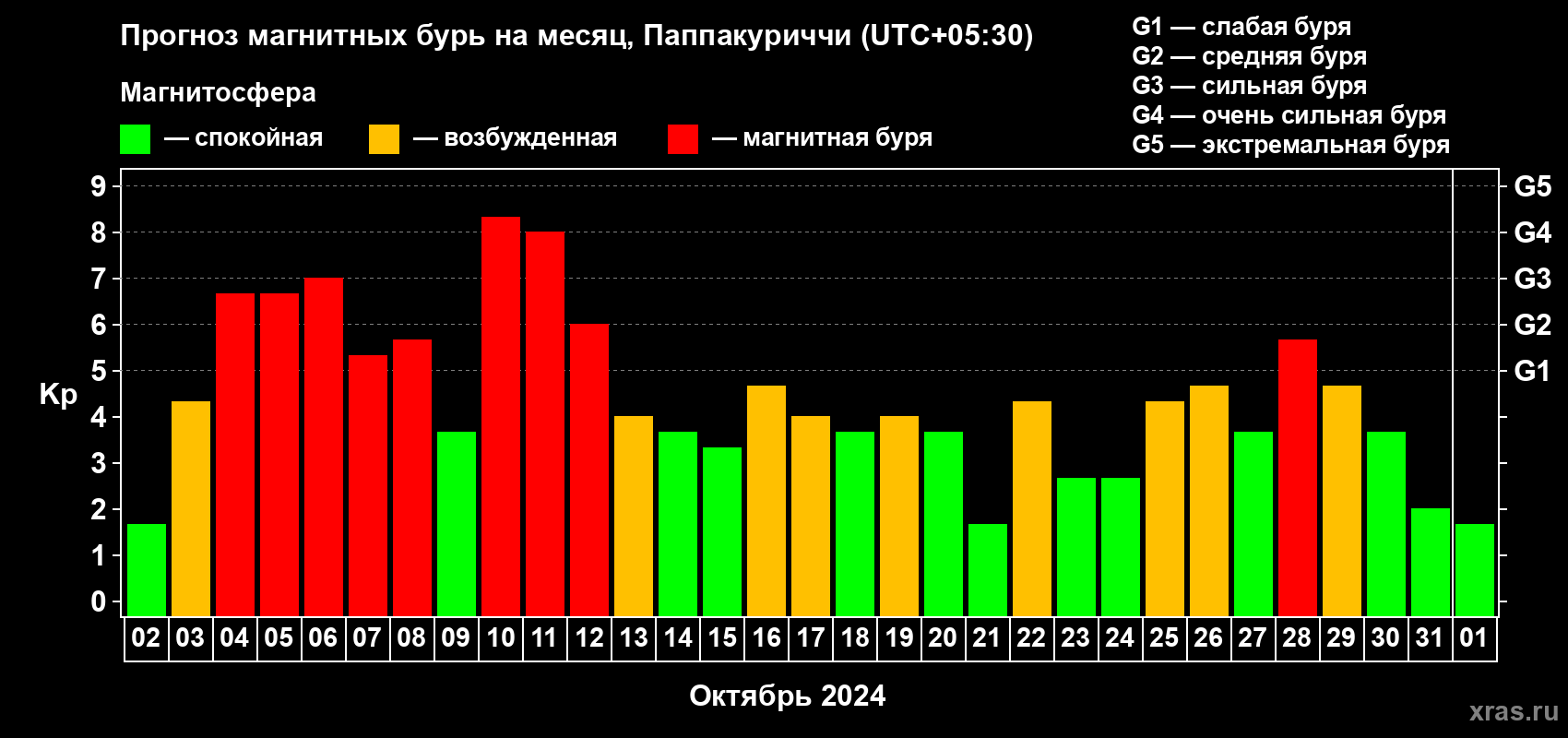 Прогноз магнитных бурь Паппакуриччи — 2 октября 2024 года