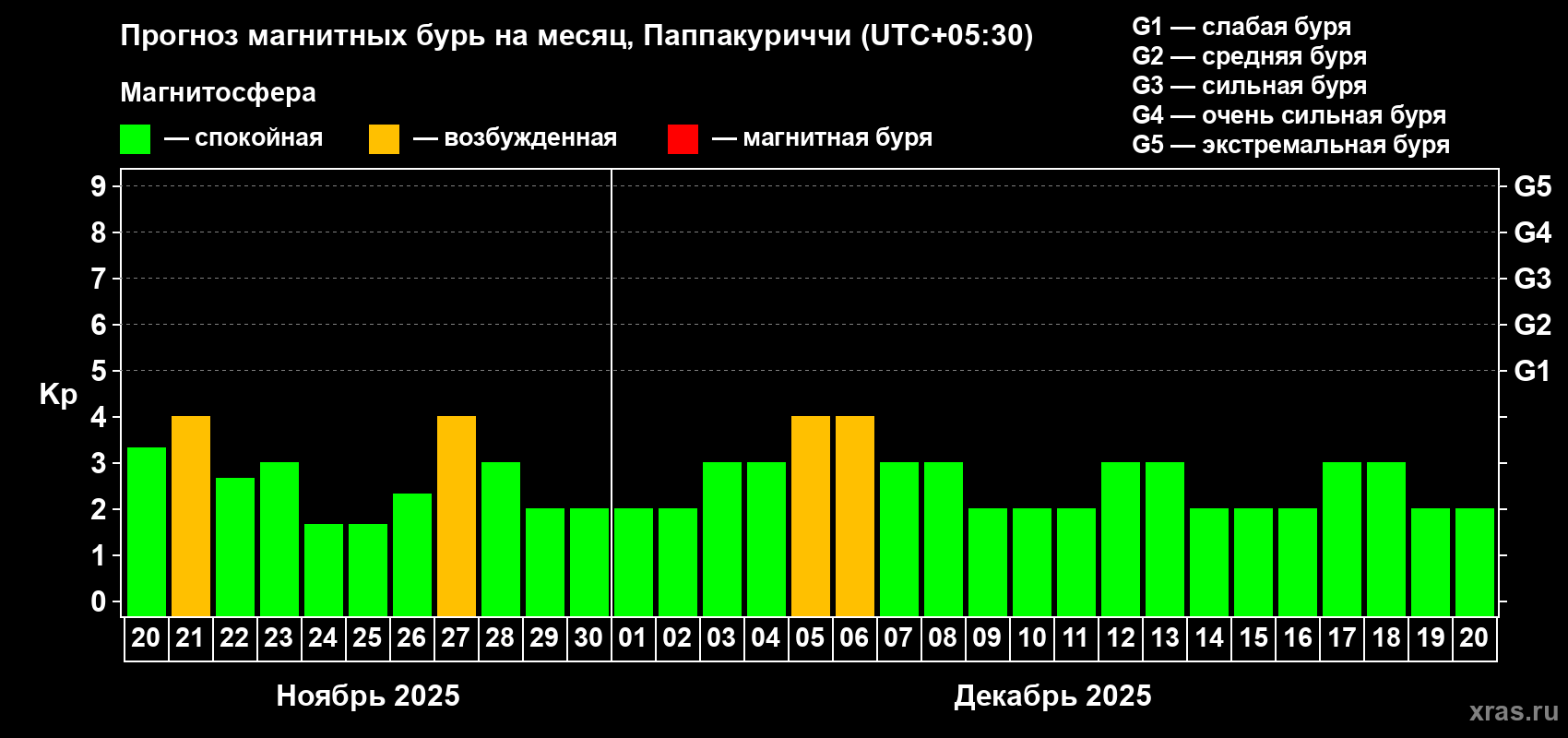 Прогноз магнитных бурь Паппакуриччи на 20 ноября 2025 года