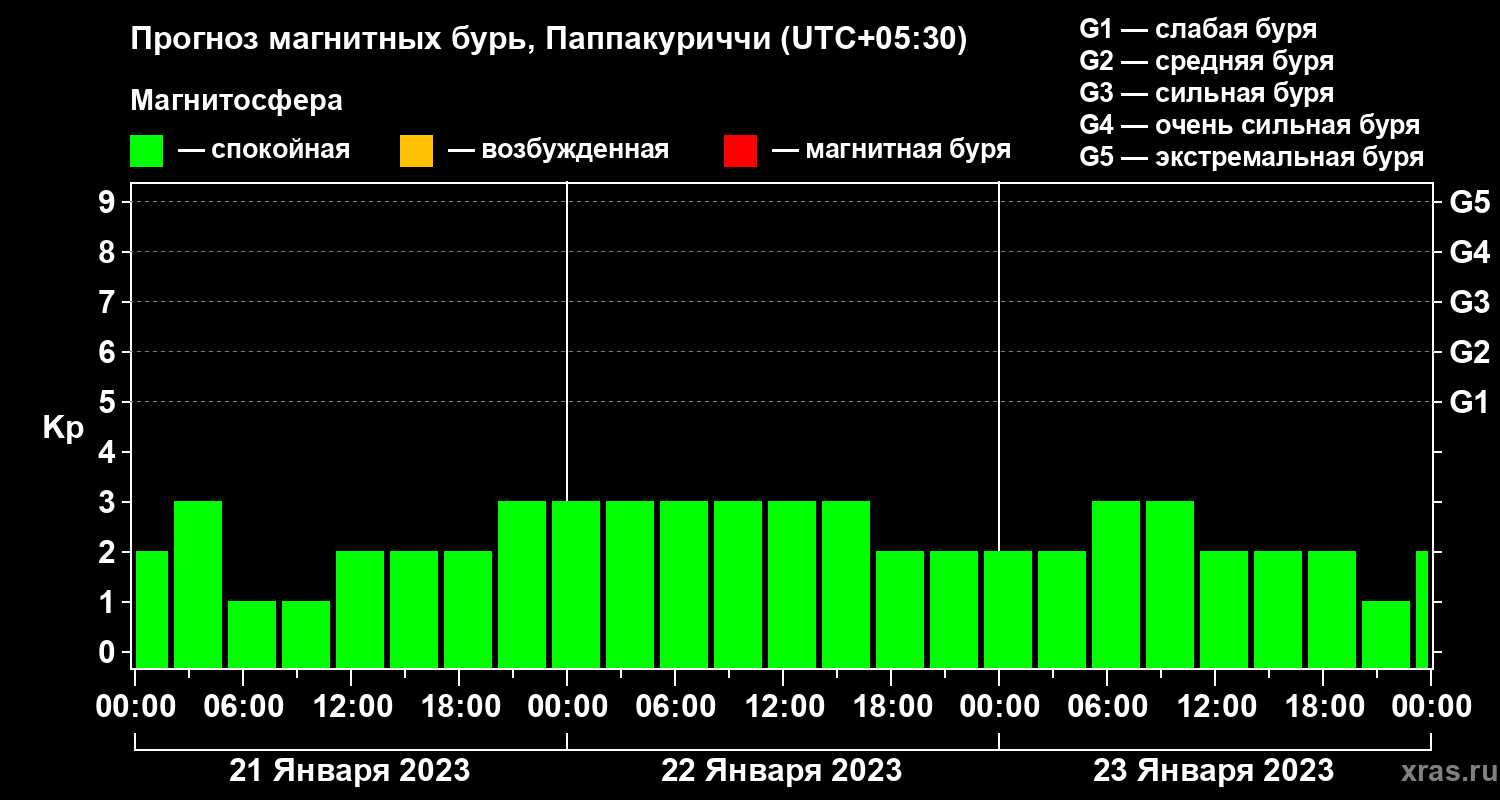 Прогноз магнитных бурь Паппакуриччи на 21 января 2023 года