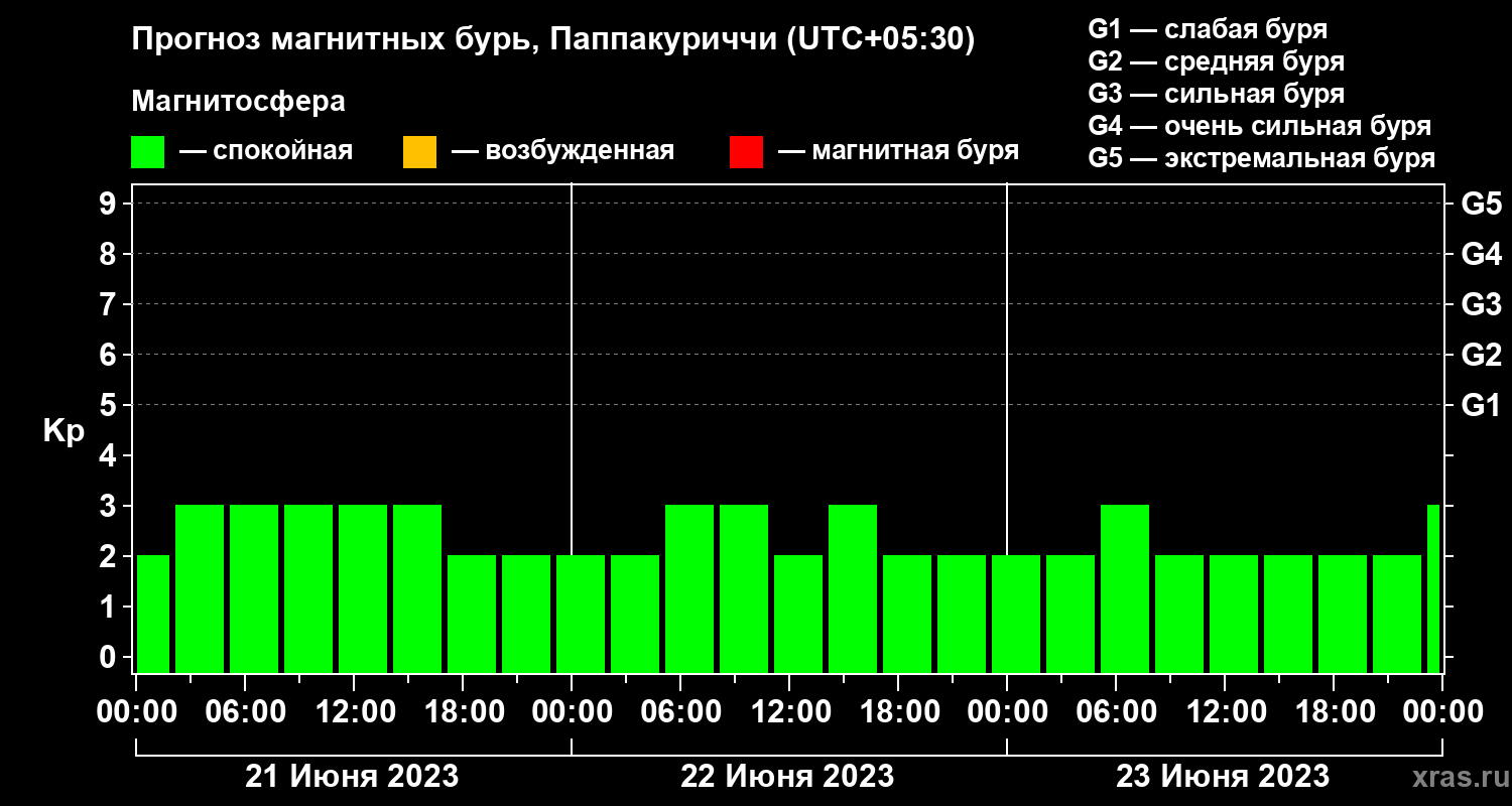 Прогноз магнитных бурь Паппакуриччи на 21 июня 2023 года