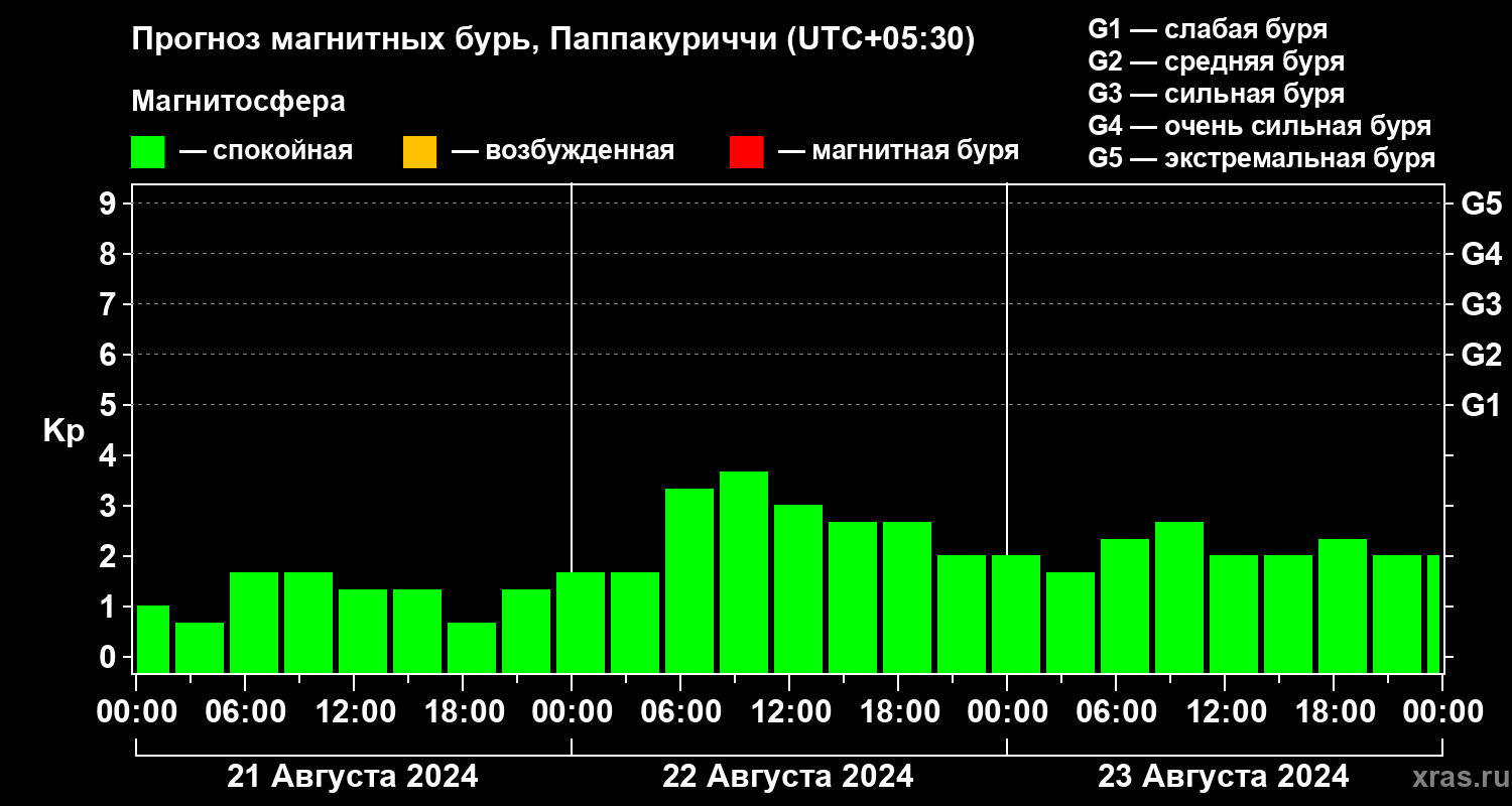 Прогноз магнитных бурь Паппакуриччи на 21 августа 2024 года