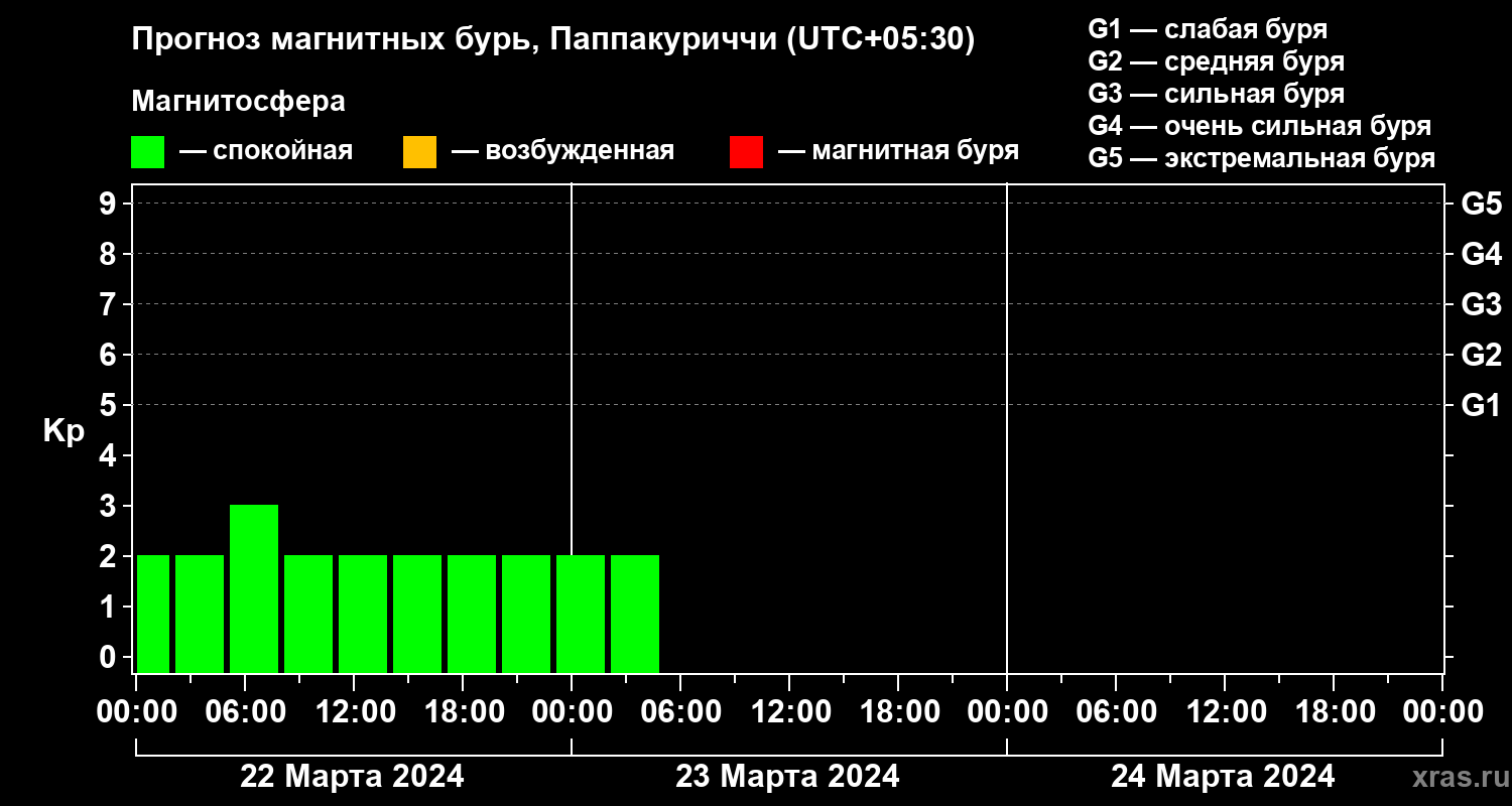 Прогноз магнитных бурь Паппакуриччи на 22 марта 2024 года