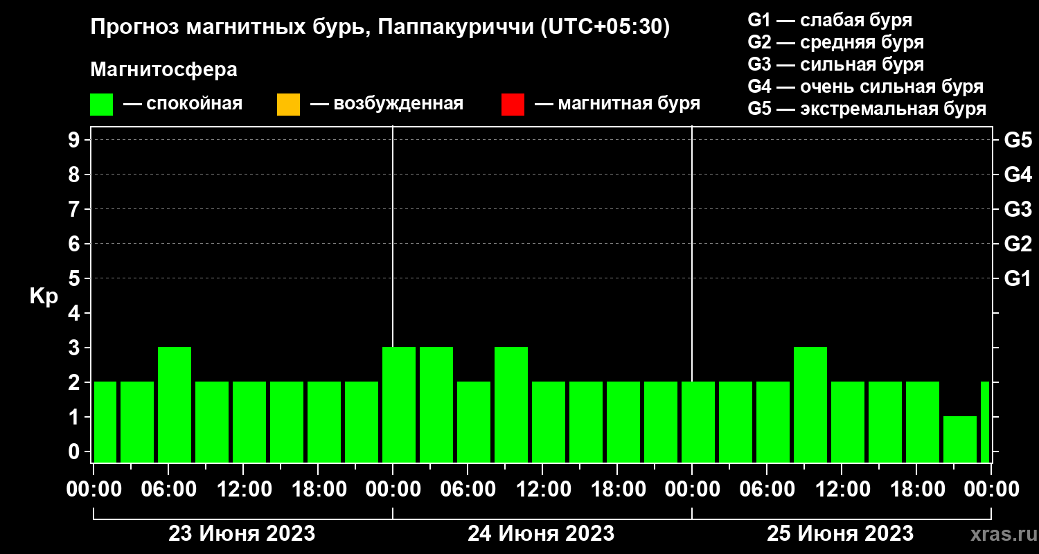 Прогноз магнитных бурь Паппакуриччи на 23 июня 2023 года