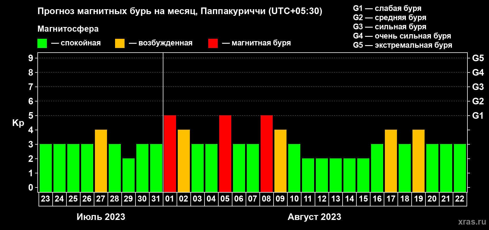Прогноз магнитных бурь Паппакуриччи — 23 июля 2023 года