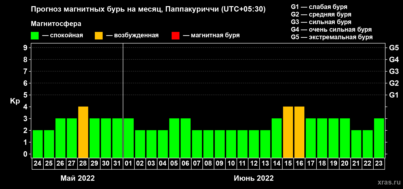 Прогноз магнитных бурь Паппакуриччи — 24 мая 2022 года