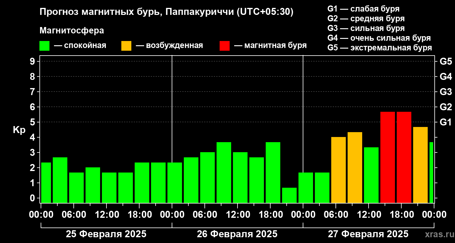 Прогноз магнитных бурь Паппакуриччи — 25 февраля 2025 года