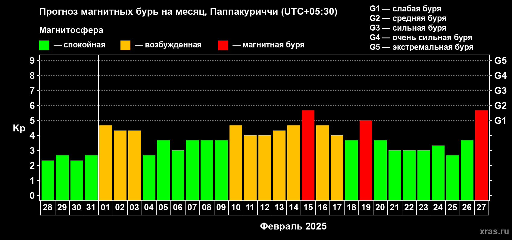 Прогноз магнитных бурь Паппакуриччи на 28 января 2025 года