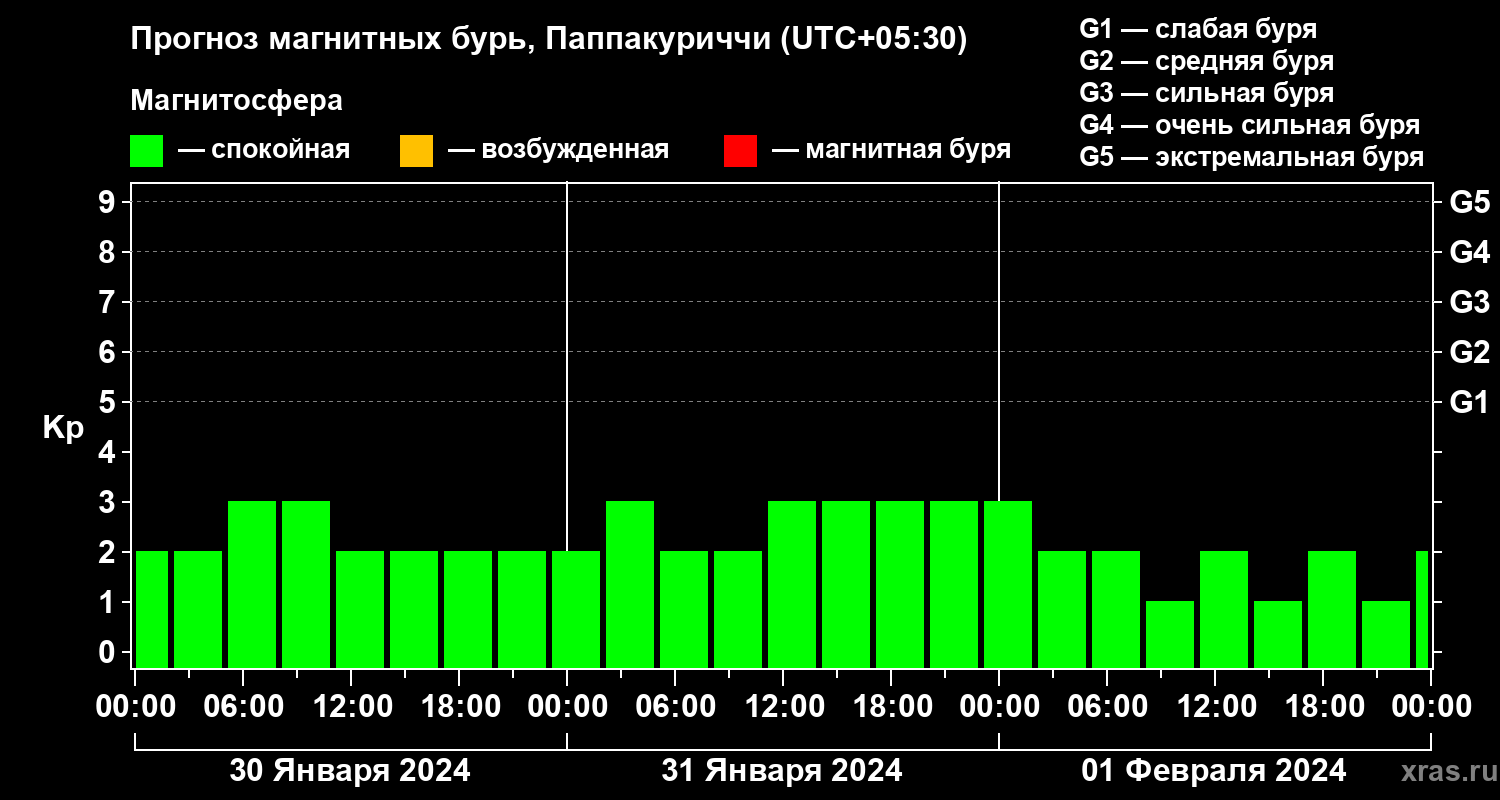 Прогноз магнитных бурь Паппакуриччи на 30 января 2024 года