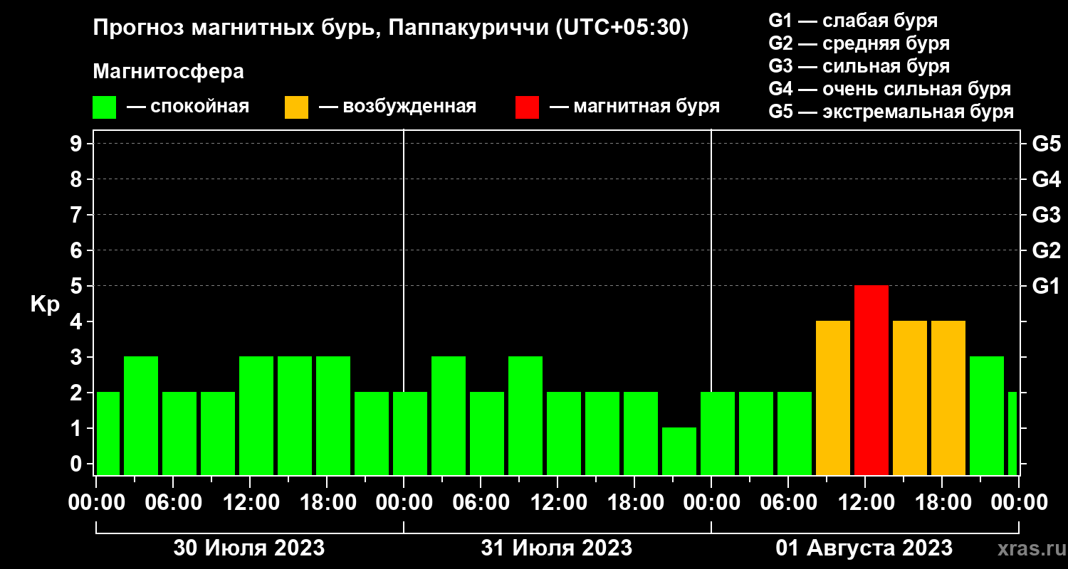 Прогноз магнитных бурь Паппакуриччи — 30 июля 2023 года