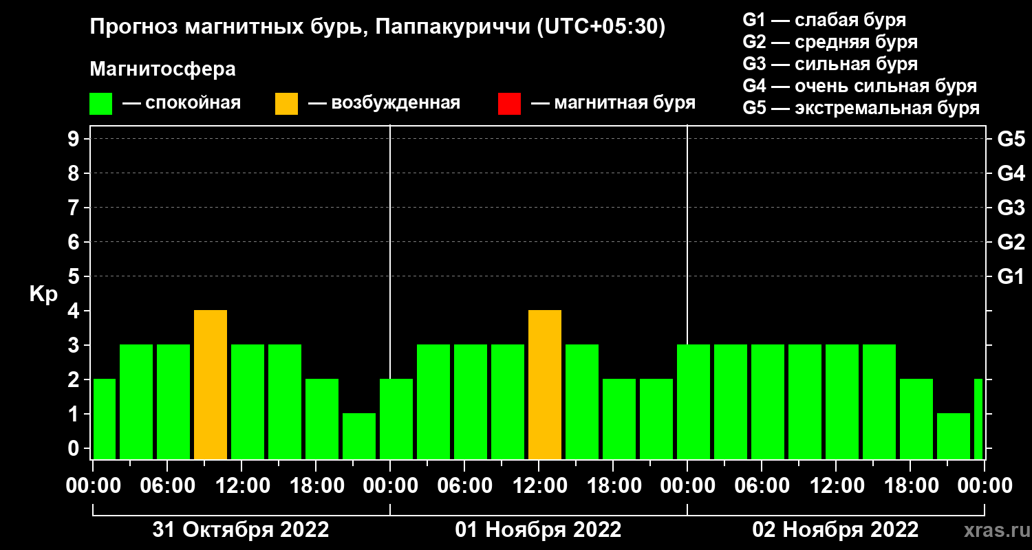 Прогноз магнитных бурь Паппакуриччи на 31 октября 2022 года