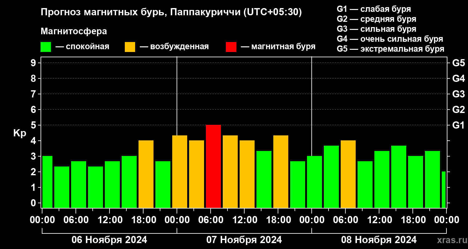 Прогноз магнитных бурь Паппакуриччи — 6 ноября 2024 года