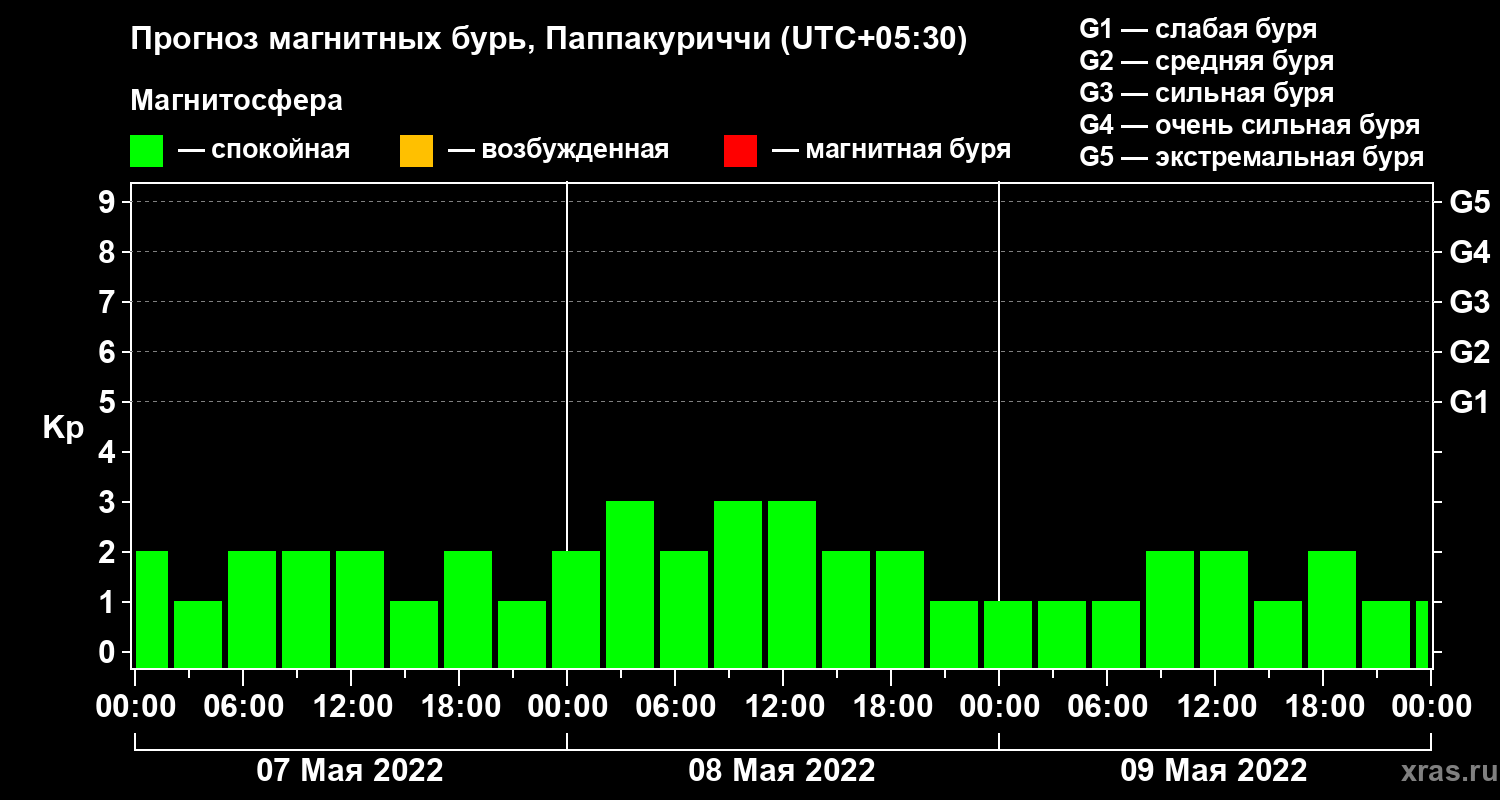 Прогноз магнитных бурь Паппакуриччи — 7 мая 2022 года