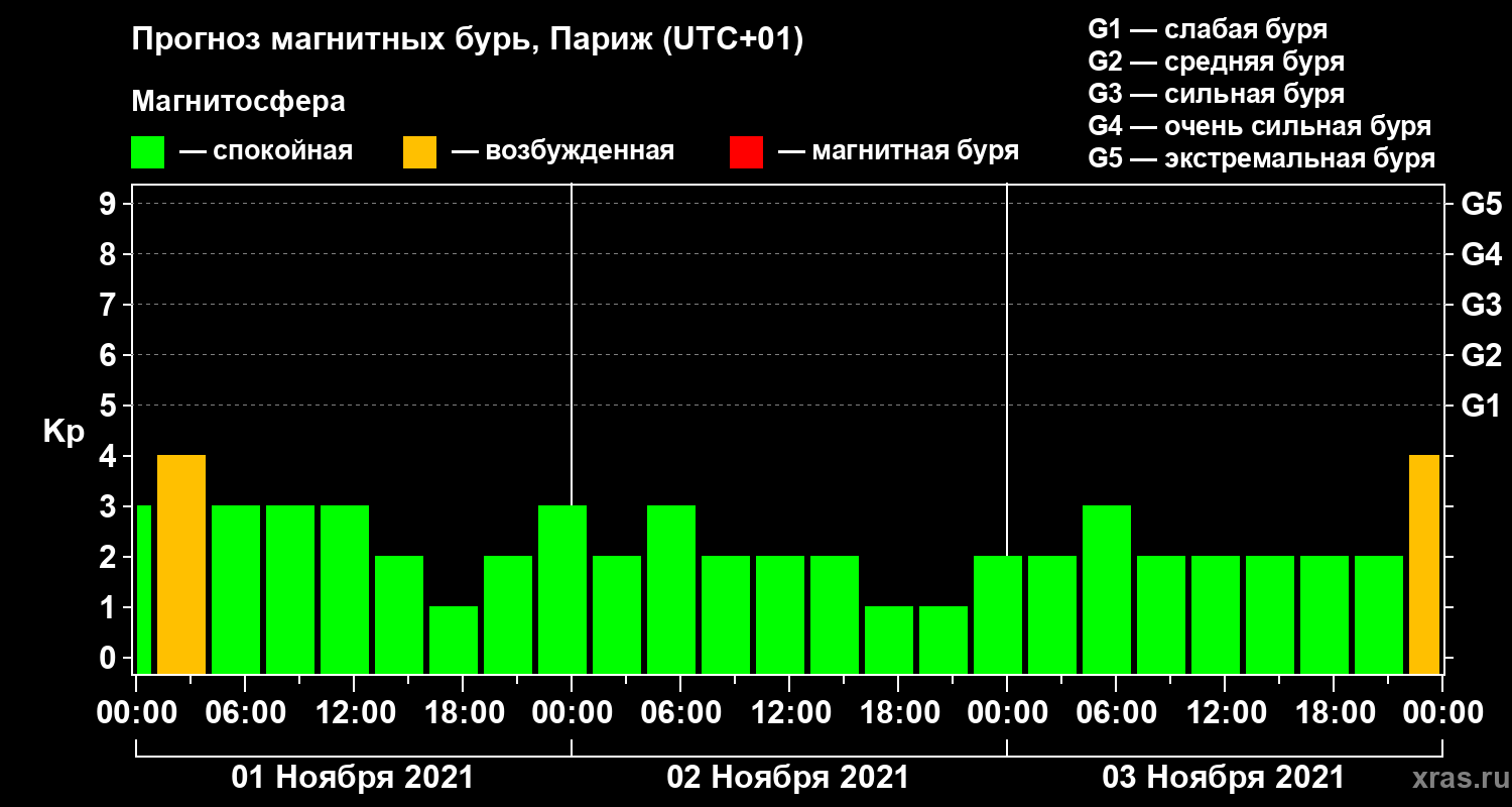 Прогноз магнитных бурь в Париже — 1 ноября 2021 года