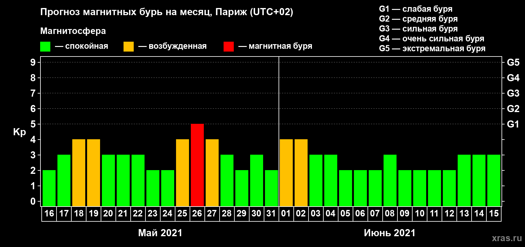 Прогноз магнитных бурь в Париже — 16 мая 2021 года