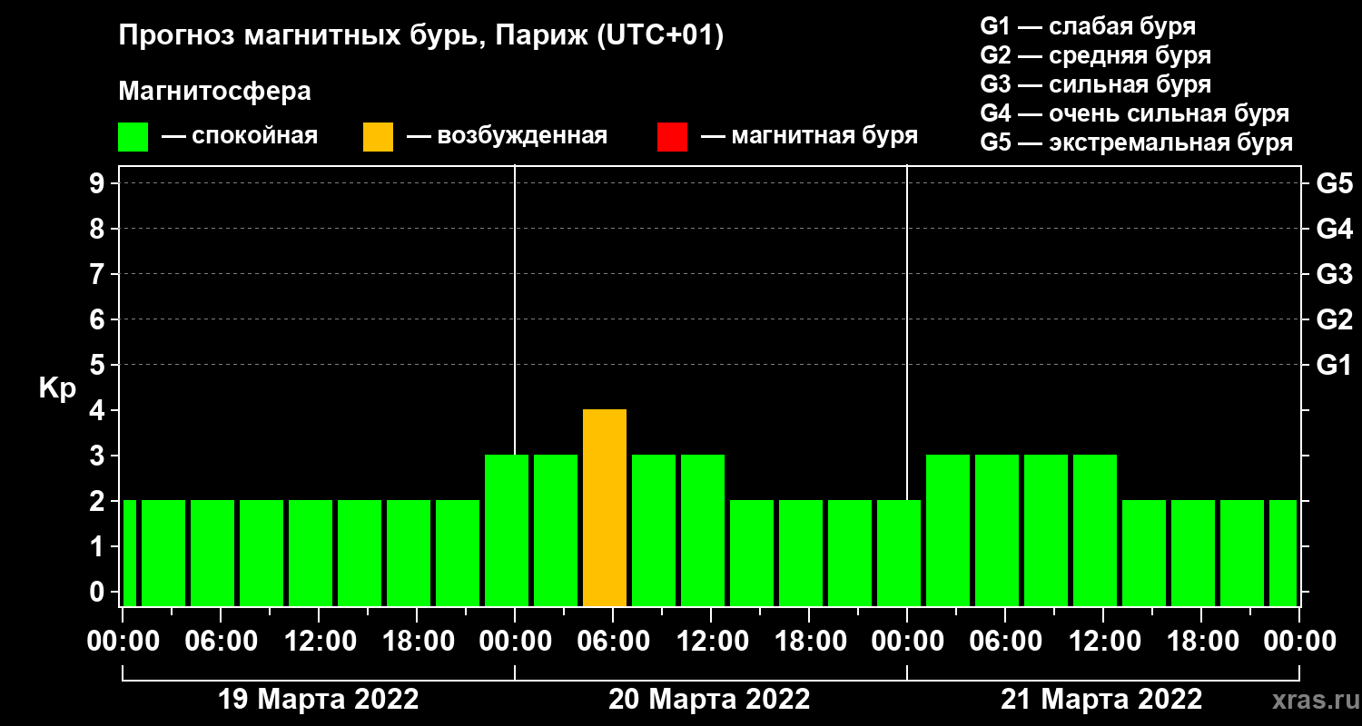 Прогноз магнитных бурь в Париже на 19 марта 2022 года