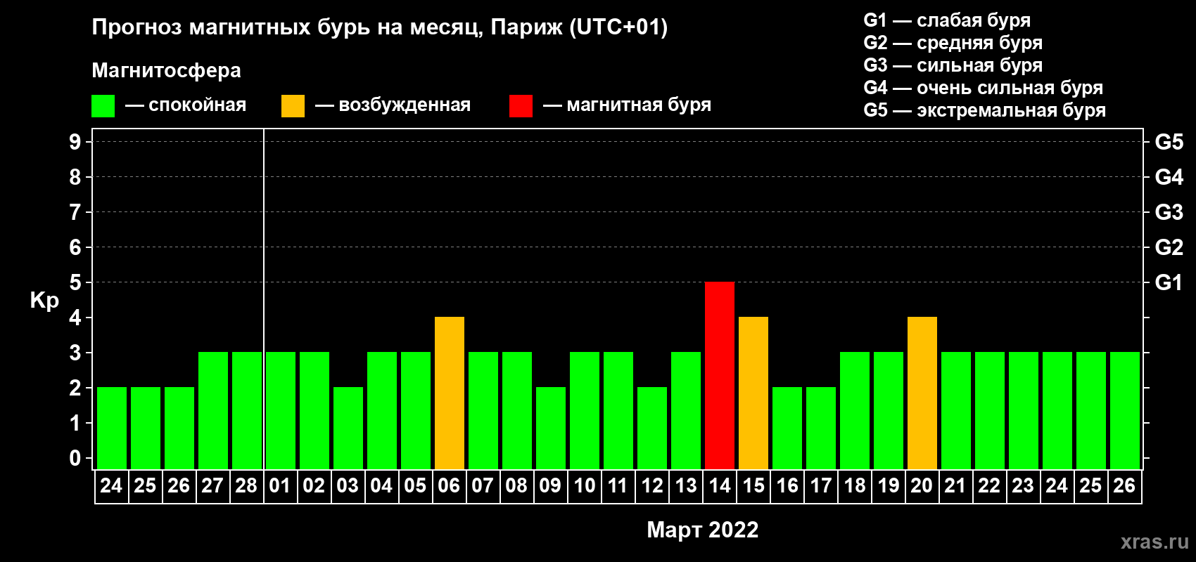 Прогноз магнитных бурь в Париже — 24 февраля 2022 года