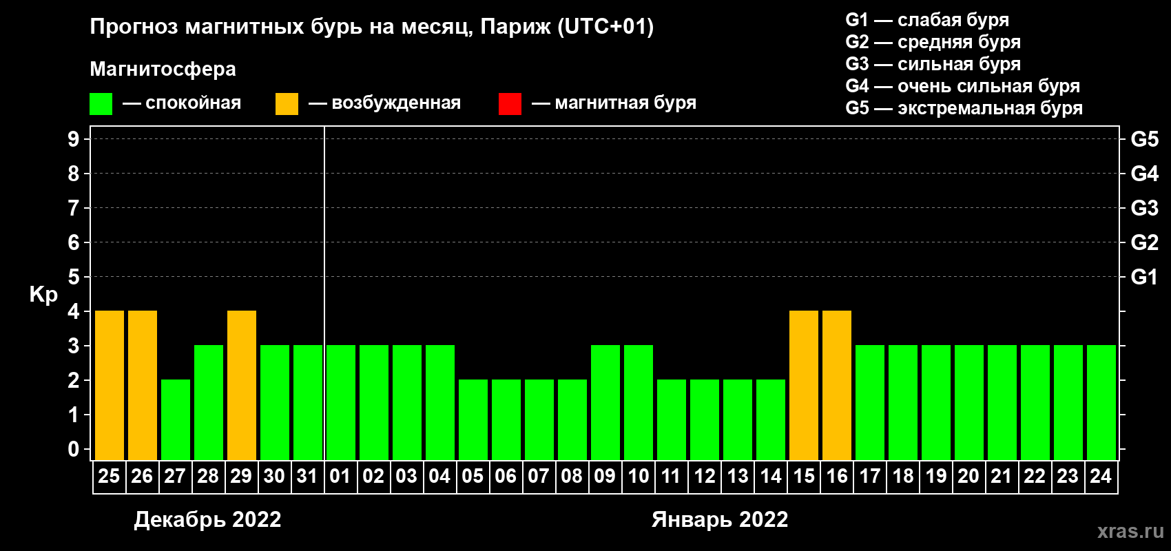 Прогноз магнитных бурь в Париже — 25 декабря 2021 года
