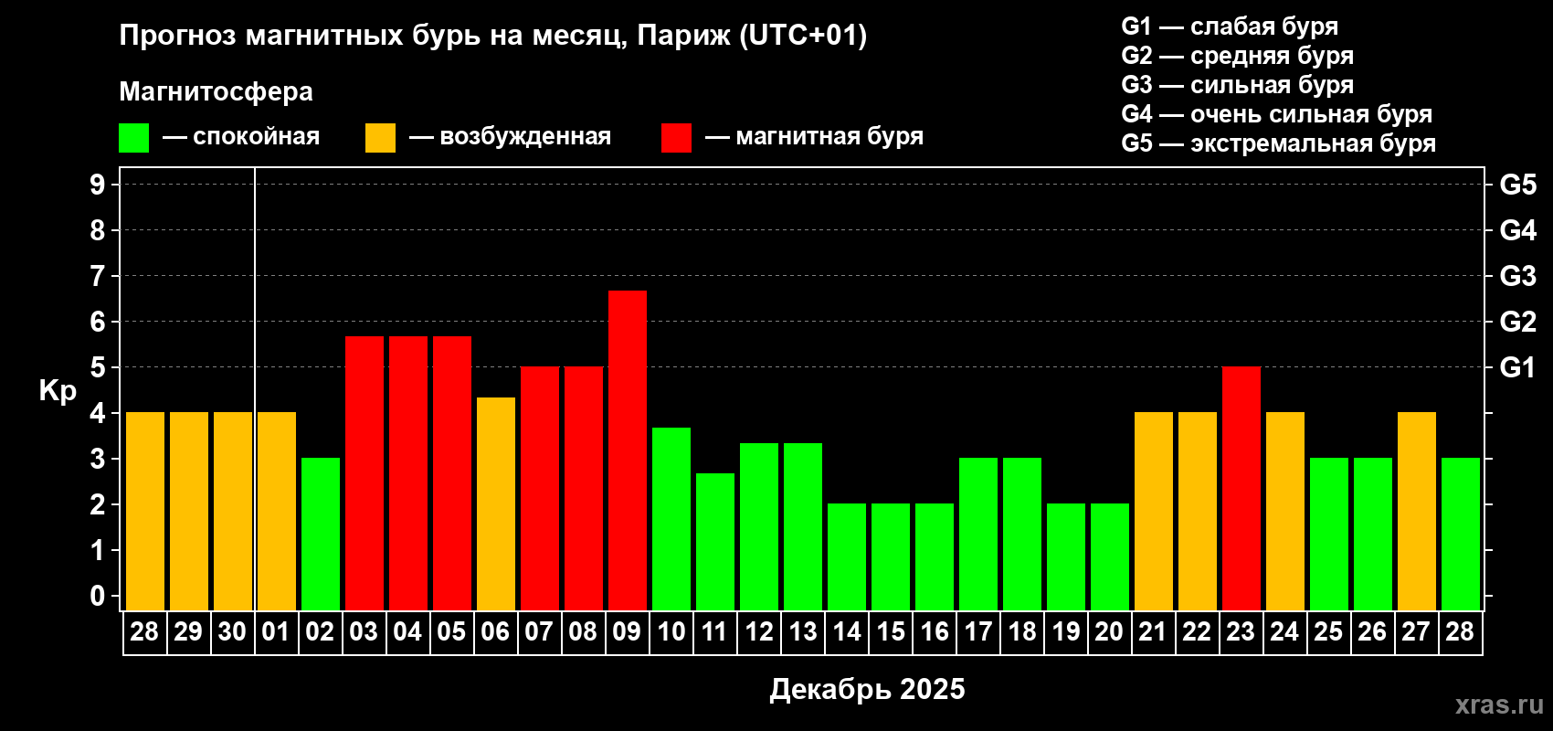 Прогноз магнитных бурь в Париже — 28 ноября 2025 года
