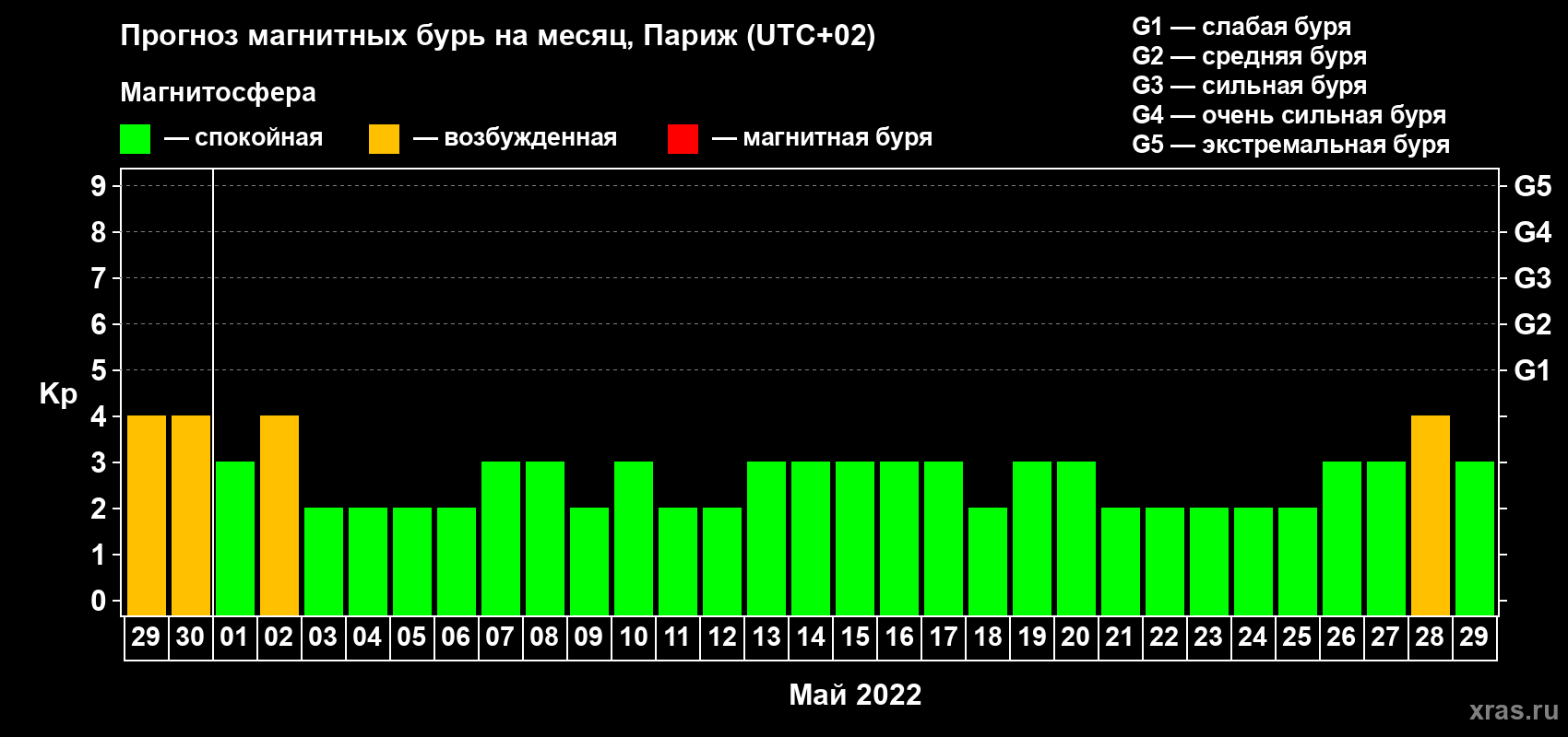 Прогноз магнитных бурь в Париже на 29 апреля 2022 года