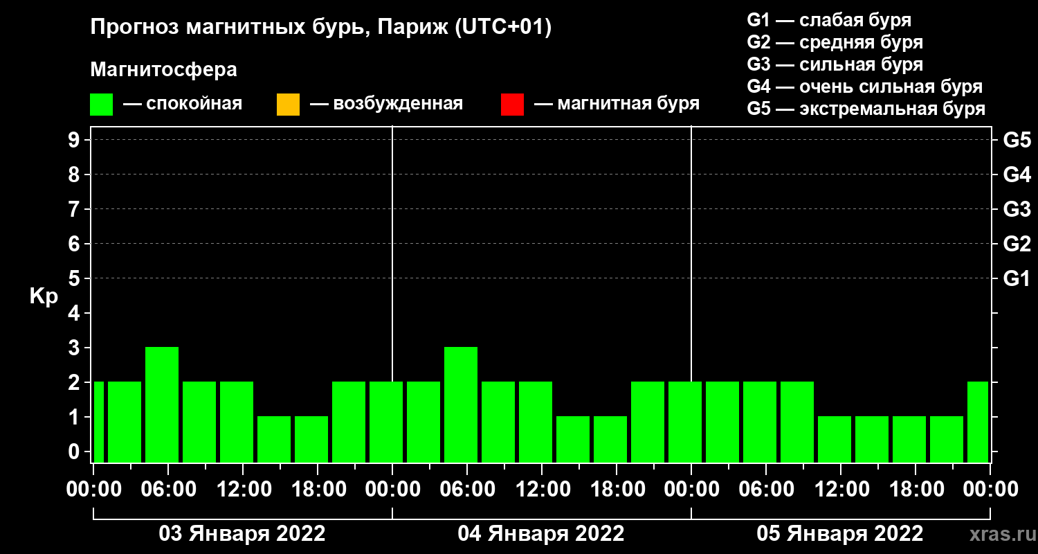 Прогноз магнитных бурь в Париже — 3 января 2022 года