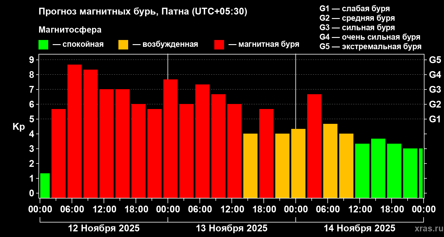 Прогноз магнитных бурь в Патне на 12 ноября 2025 года