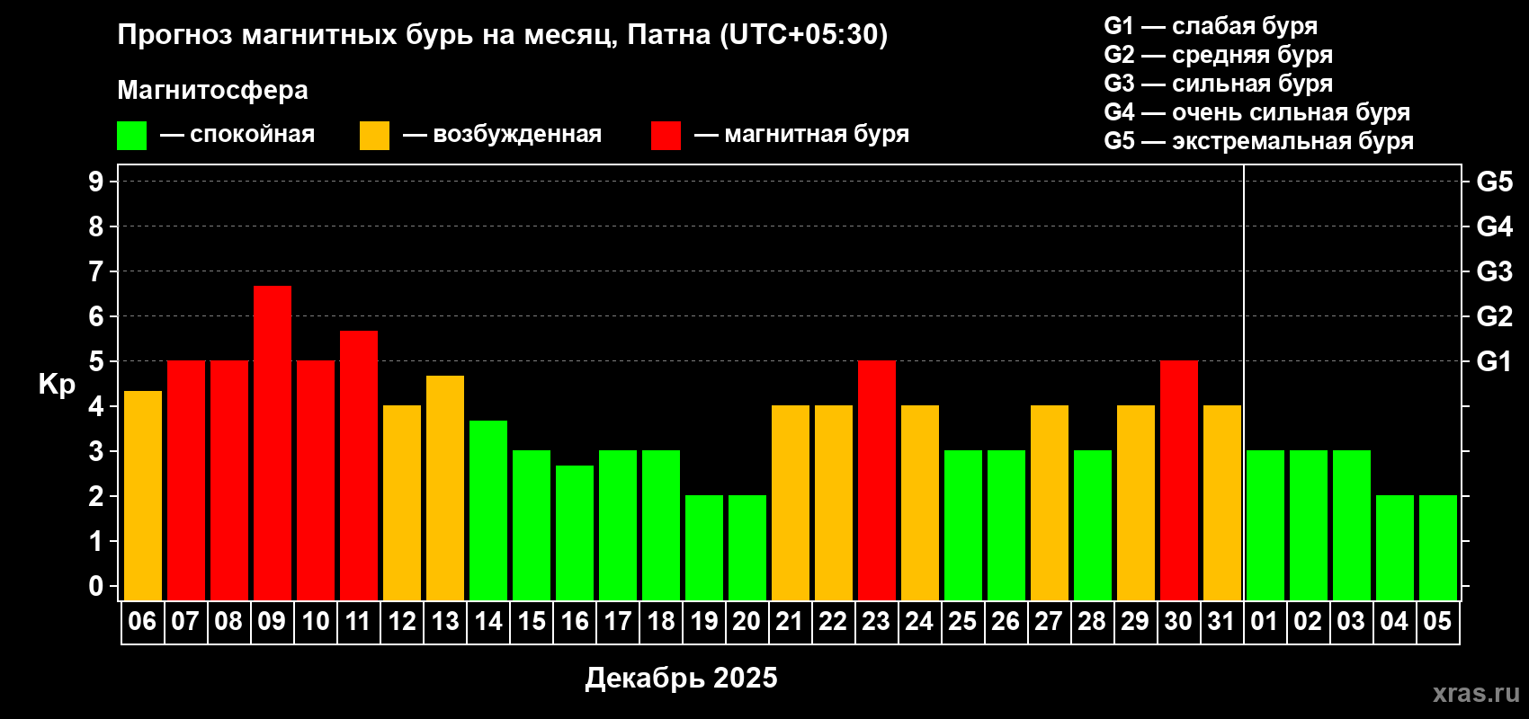 Прогноз магнитных бурь в Патне — 6 декабря 2025 года