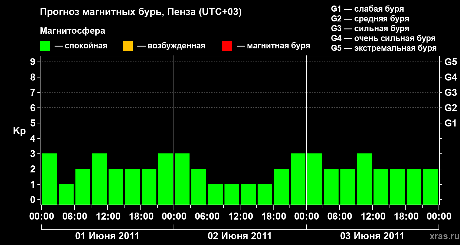 Прогноз магнитных бурь в Пензе на 1 июня 2011 года