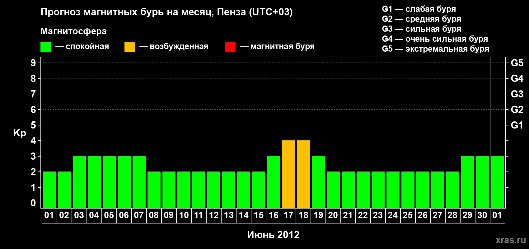 Прогноз магнитных бурь в Пензе — 1 июня 2012 года