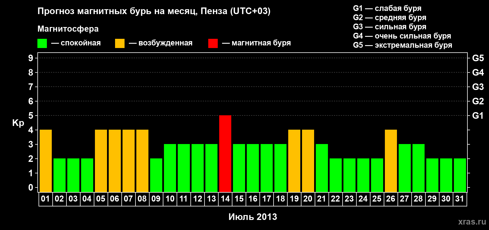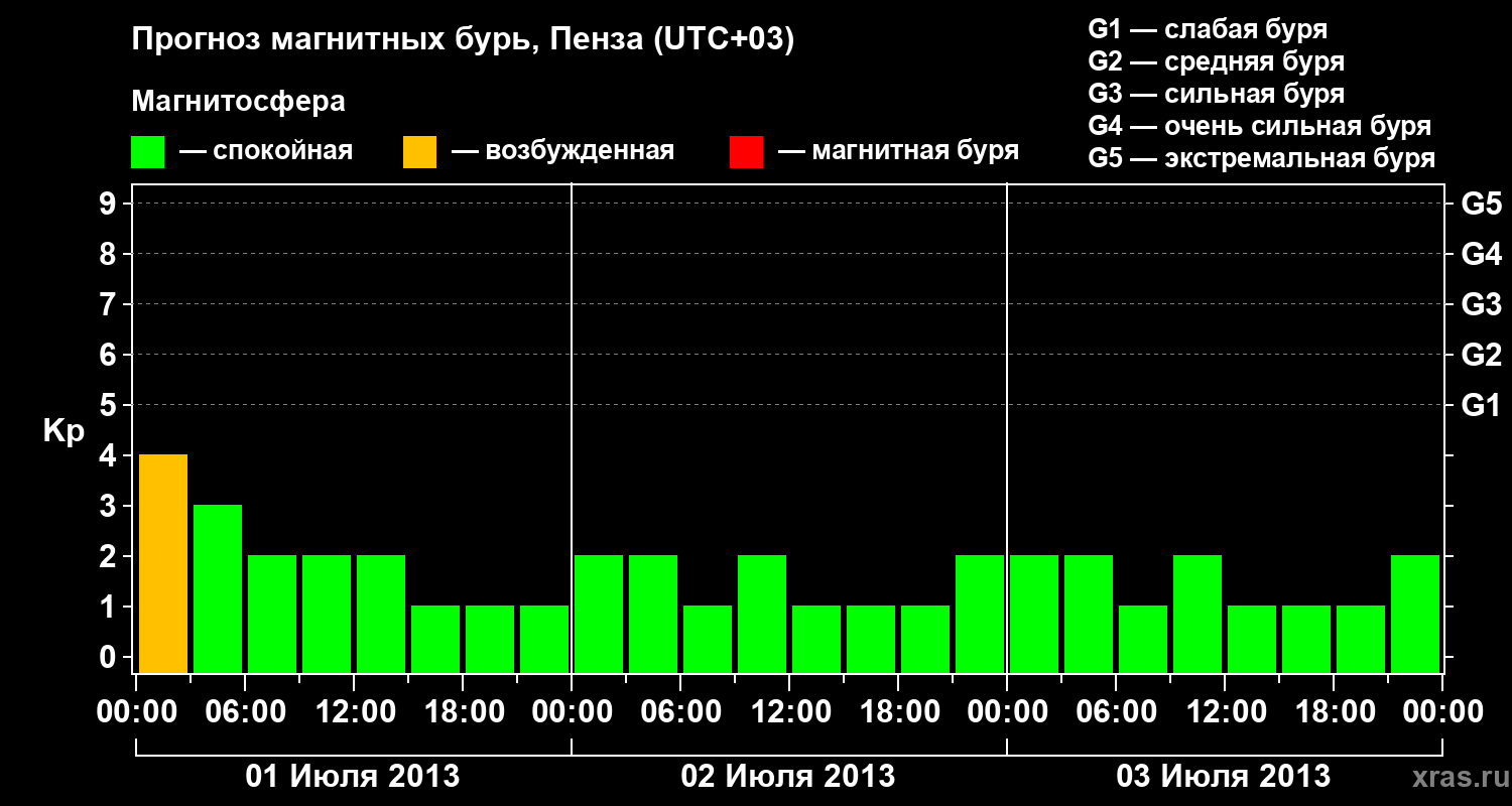 Прогноз магнитных бурь в Пензе — 1 июля 2013 года