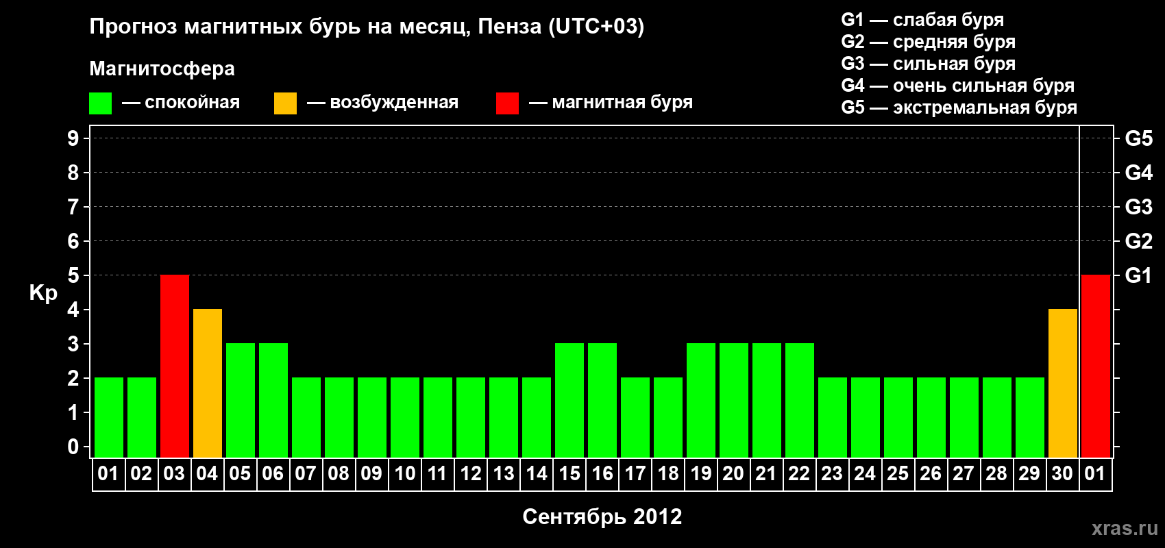 Прогноз магнитных бурь в Пензе на 1 сентября 2012 года