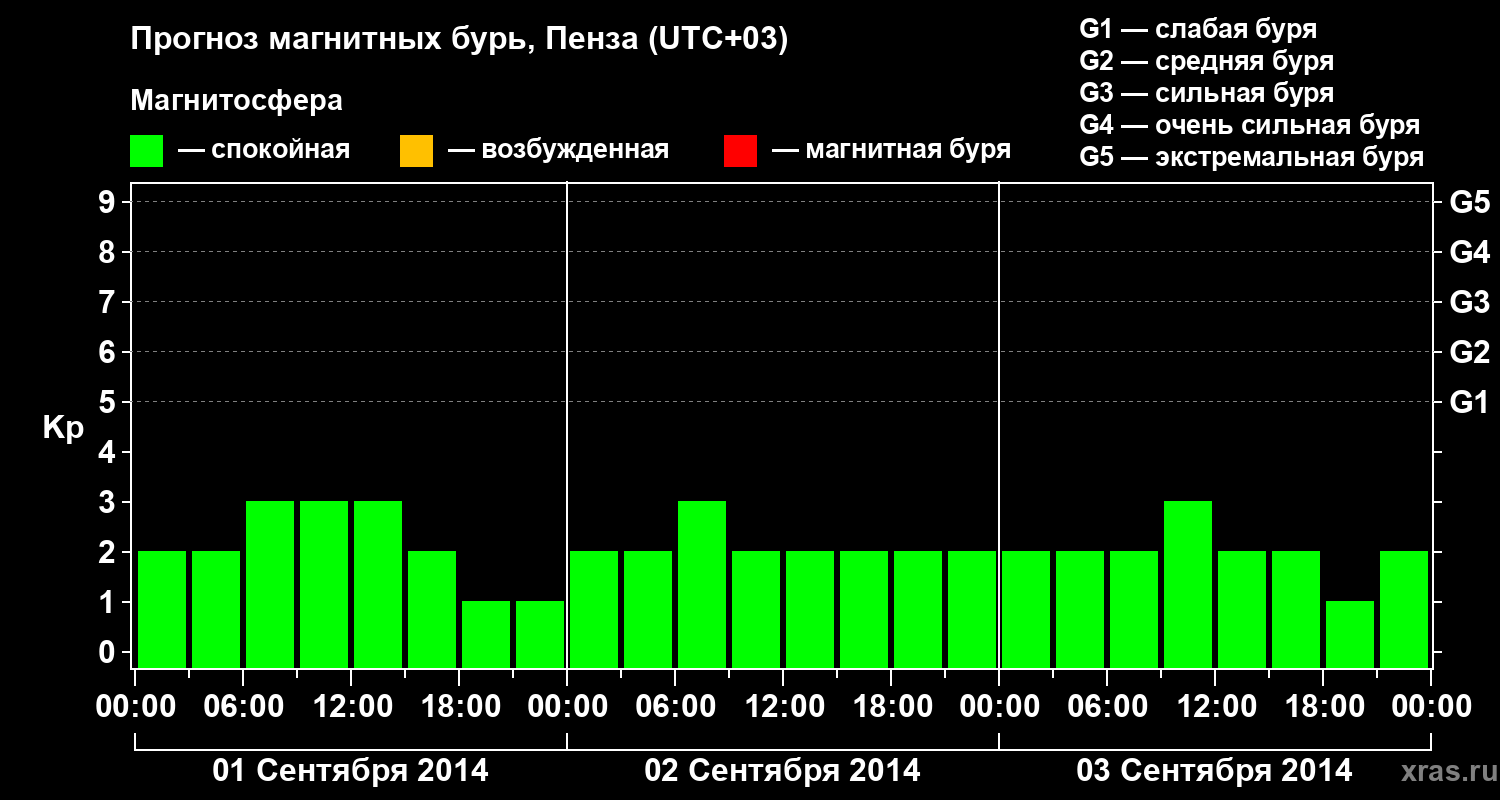 Прогноз магнитных бурь в Пензе на 1 сентября 2014 года