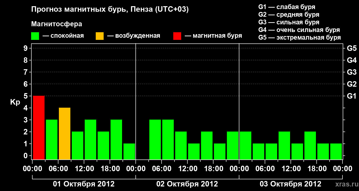 Прогноз магнитных бурь в Пензе — 1 октября 2012 года