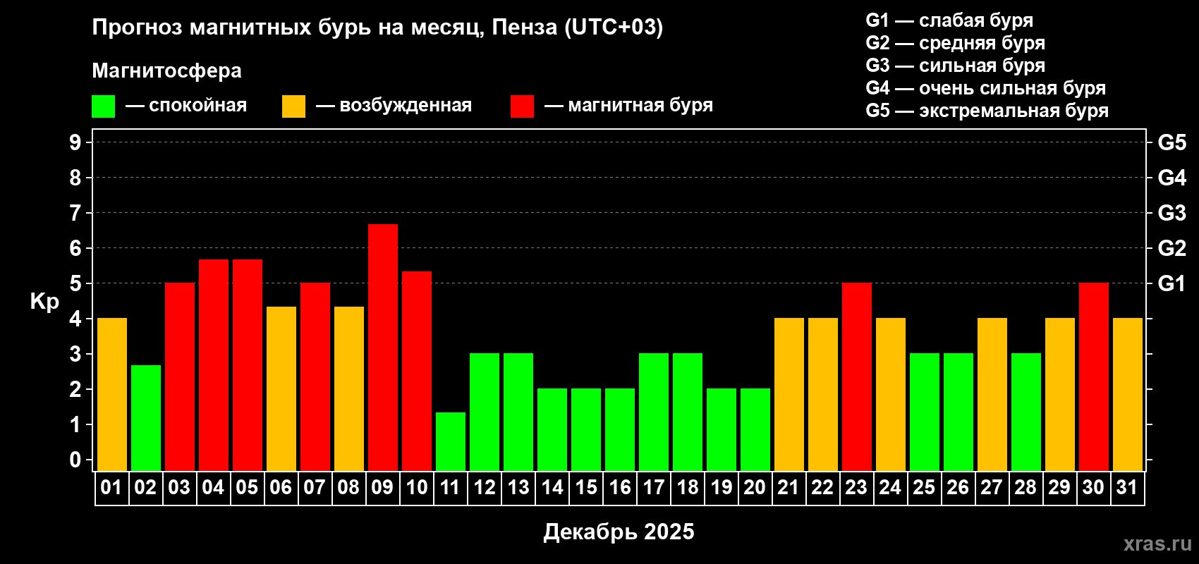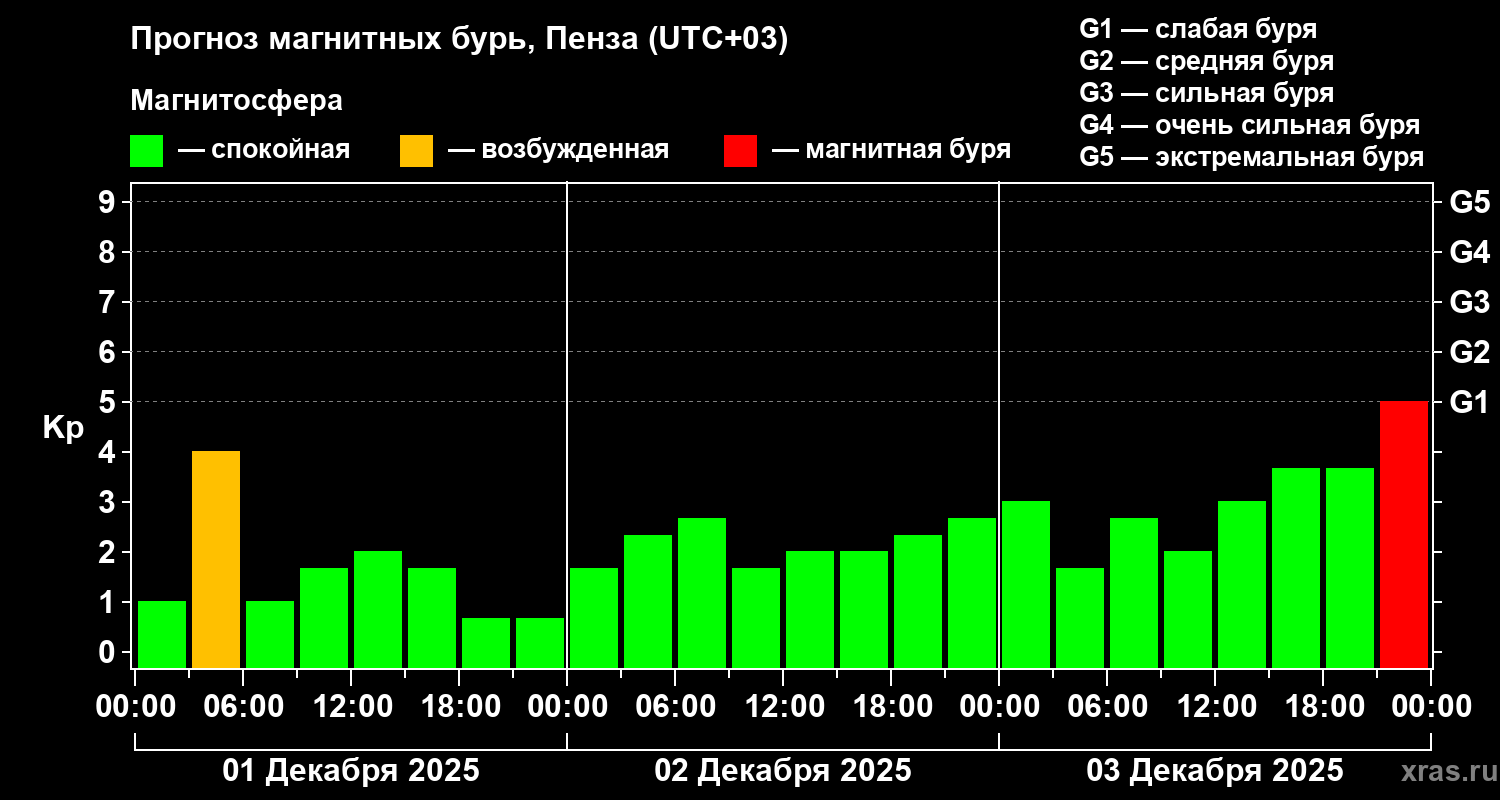 Прогноз магнитных бурь в Пензе — 1 декабря 2025 года