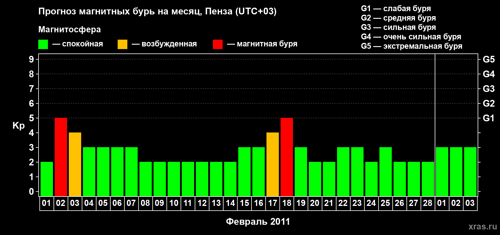 Прогноз магнитных бурь в Пензе на 1 февраля 2011 года